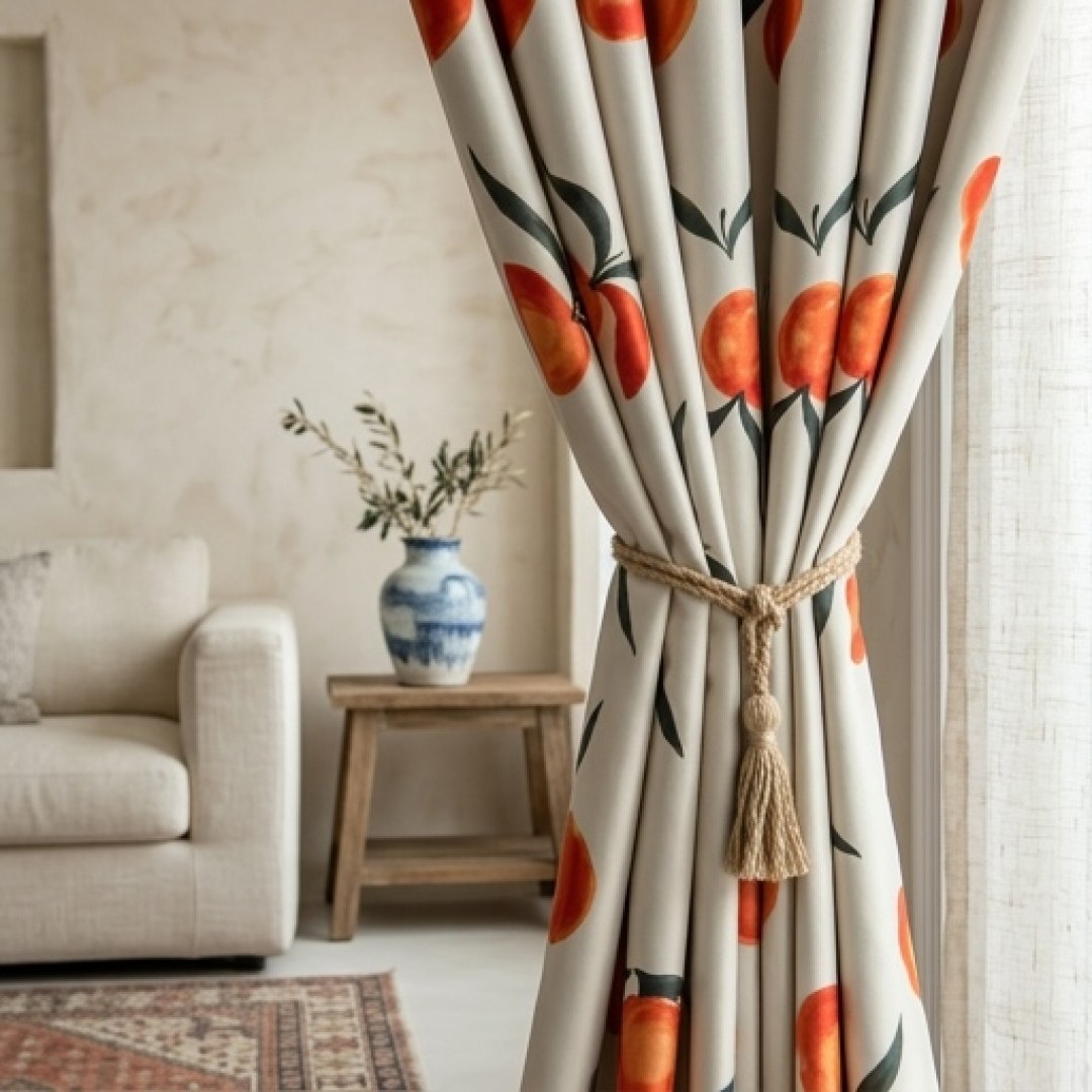 Die glücklichste Farbe ist Orange! Werden Sie kreativ mit diesen brillanten Ideen zur Dekoration mit kräftigen Farbvorhängen. Unsere maßgefertigten Vorhänge werden sorgfältig gefertigt, um Ihren spezifischen Vorlieben gerecht zu werden. Sie sind in einer Vielzahl von Kopfformen erhältlich, die Ihrem Geschmack entsprechen, darunter Schlingen, Ösen, Zwickfalten, Maßfalten, umgekehrte Kastenfalten, Schlaufen, Rückenschlaufen, Schlauchtasche und Wellenvorhänge. Entdecken Sie unsere atemberaubenden Vorhänge mit Fruchtmuster.