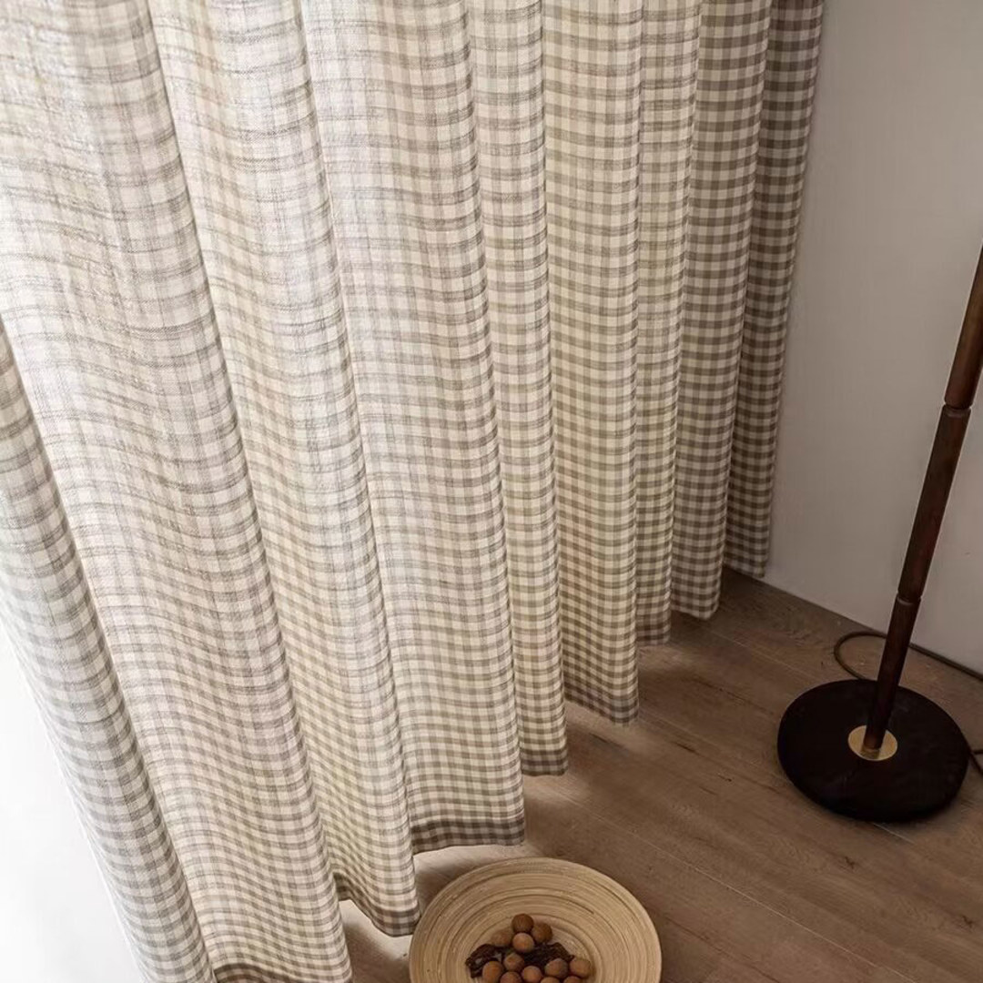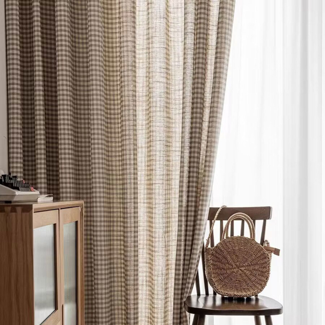 Farmhaus-Charme Leinen-Optik Mocha Braun Gingham-Karomuster Vorhänge