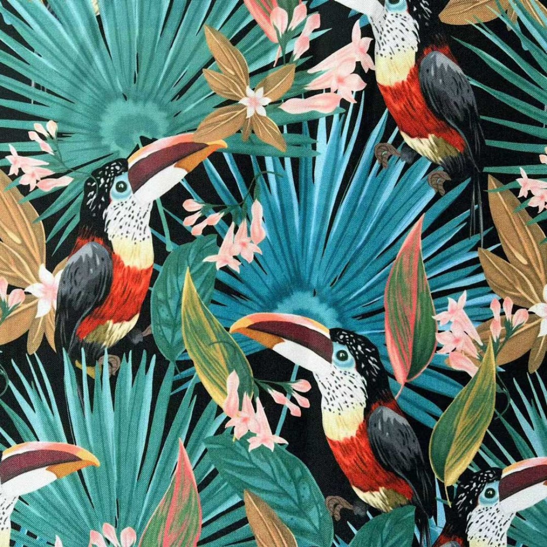 Mit Liebe zum Detail gefertigt, sind diese Vorhänge nicht nur ein Blickfang, sondern auch ein Statement für Ihr Zuhause. Die tropische Vegetation und die leuchtenden Tukanvögel bringen die Natur ins Haus und verleihen Ihrem Wohnraum die lebendige Energie der Tropen. Die üppigen Grüntöne verleihen jedem Raum eine erfrischende Note und exotische Eleganz und schaffen eine lebendige und einladende Atmosphäre. Unsere maßgefertigten Vorhänge werden sorgfältig nach Ihren individuellen Wünschen gefertigt. Sie sind in verschiedenen Aufhängungsarten erhältlich, die Ihrem Geschmack entsprechen, darunter Schlaufenschlauch, Ösen, Zwickfalten, Wellenschlauch, umgekehrte Zwickfalten, Schlaufen, Rückenschlaufen, Stangentasche und Wave-Vorhang.Entdecken Sie, wie tropische Vorhänge jeden Raum aufwerten können.