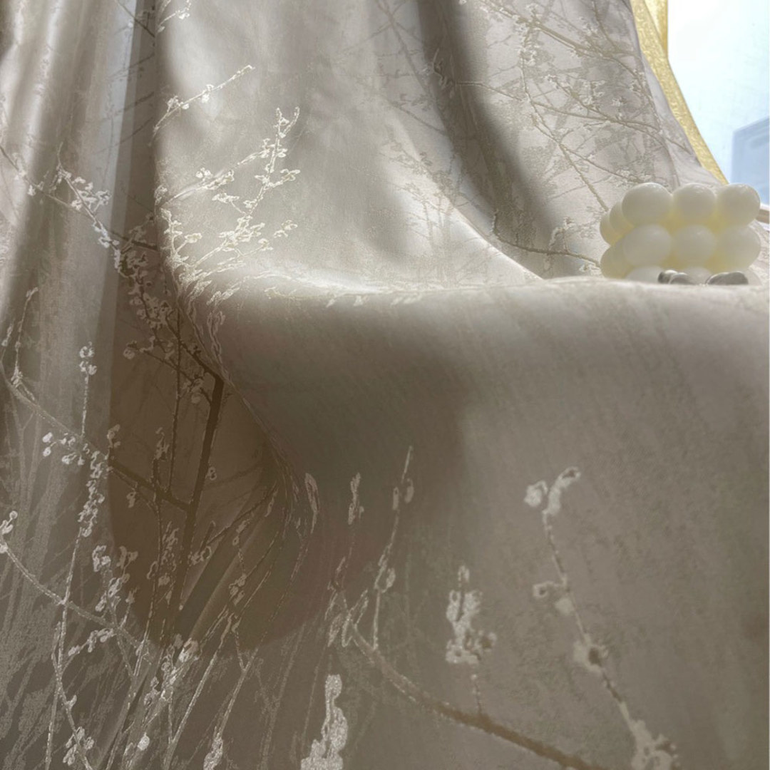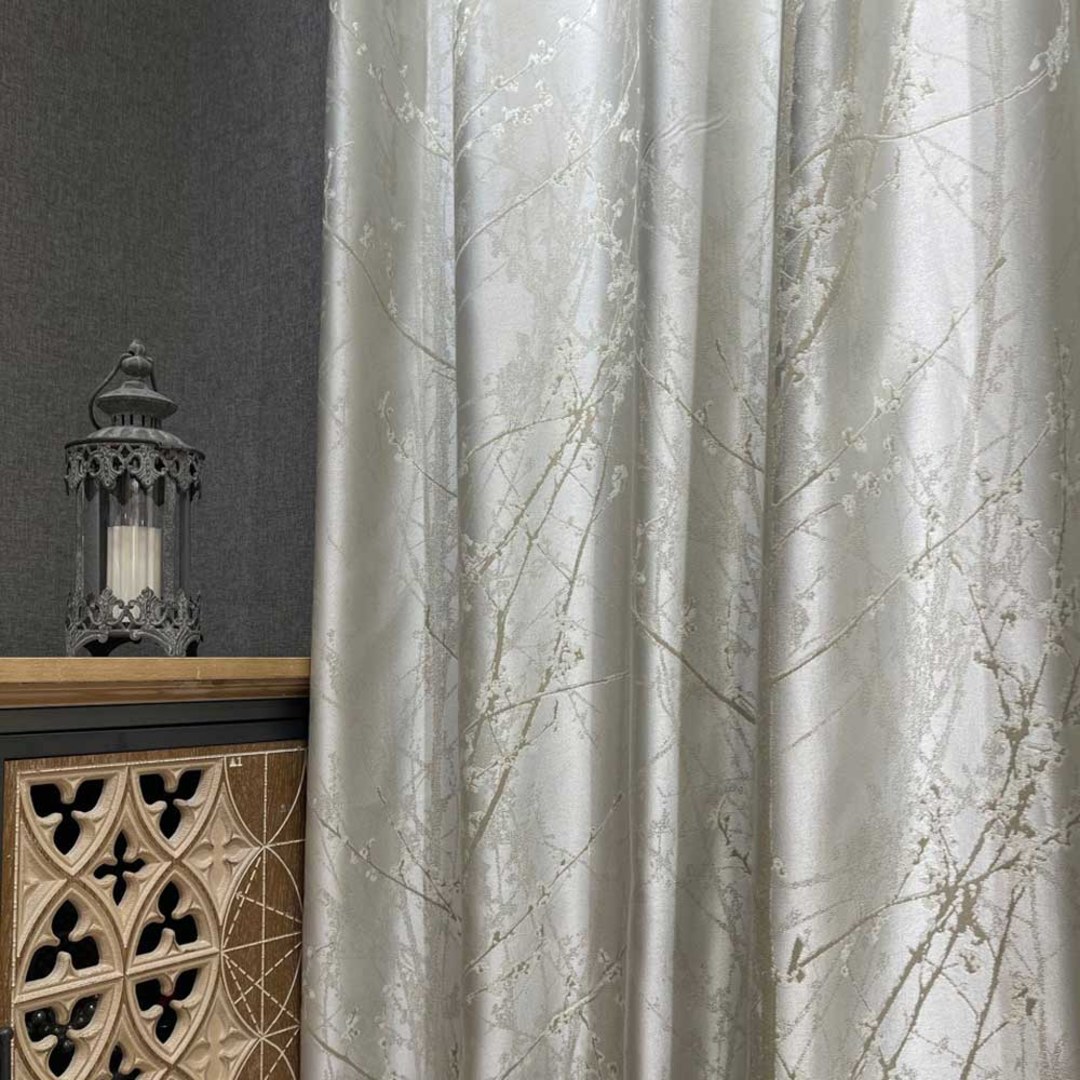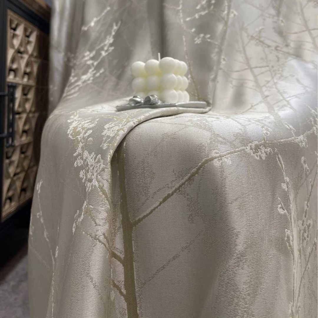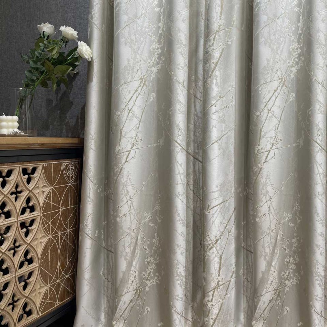 Mit Perfektion gefertigt, strahlen die Blossom Branches Vorhänge eine raffinierte Eleganz aus. Mit filigranen Zweigmotiven, die zart mit abstrakten Blumen verziert sind, hebt dieser Vorhang Ihr Dekor mühelos mit seinem subtilen Charme und luxuriösen Creme- und Hellgoldtönen hervor. Unsere maßgefertigten Blumenvorhänge werden sorgfältig nach Ihren spezifischen Wünschen gefertigt. Sie sind in einer Vielzahl von Falten erhältlich, um Ihrem Geschmack gerecht zu werden, darunter Schlingen, Ösen, Zwickfalten, Maßfalten, umgekehrte Kastenfalten, Schlaufen, Rückenschlaufen, Tunnelzug und Wellenvorhänge. Entdecken Sie, wie abstrakte Vorhänge jeden Raum erneuern können.