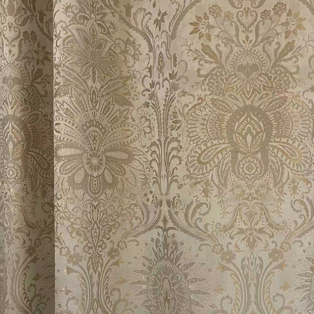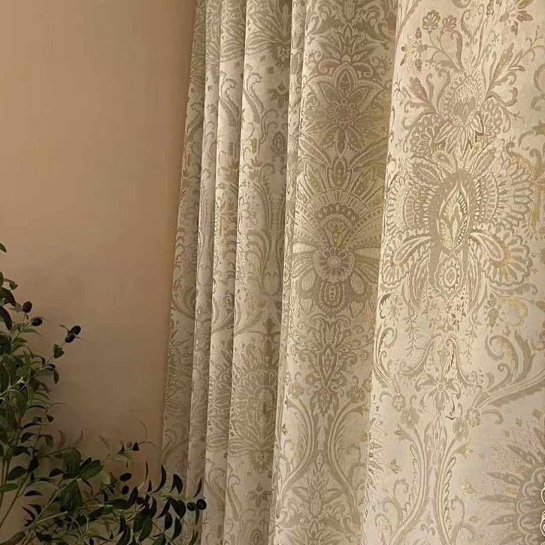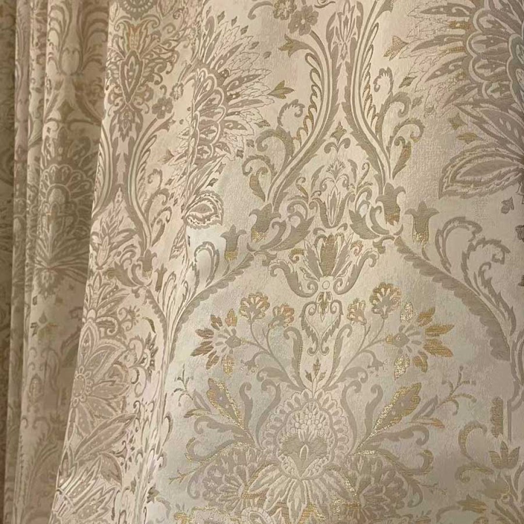 Verleihen Sie Ihrer Einrichtung mit diesen seidig luxuriösen Jacquard-Blumenvorhängen in Creme und Gold im zeitlosen Damast-Design eine besondere Note.