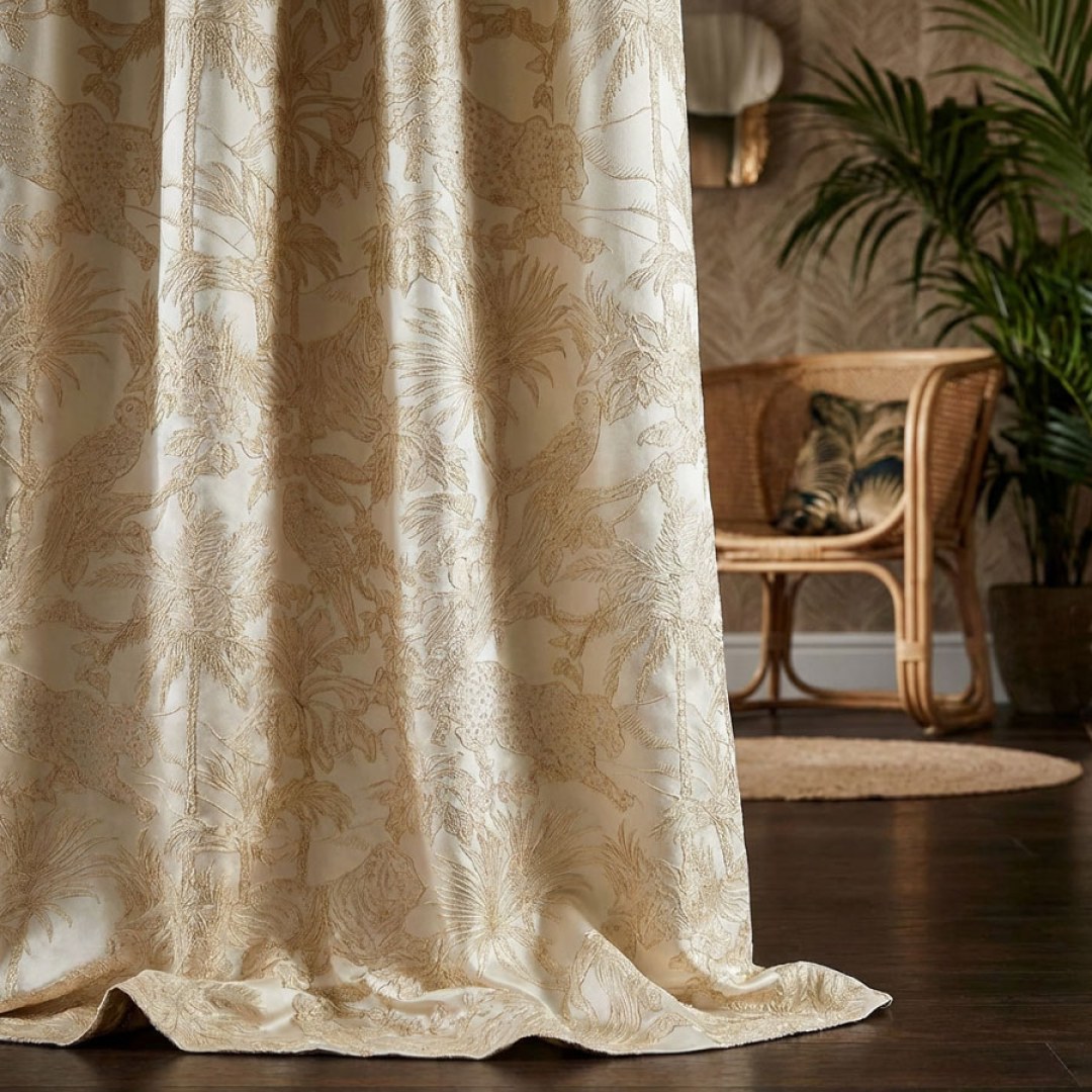 Lassen Sie Ihre Fenster mit Stil aufleben – Jungle Jive‘s lebendiges Design mit Leoparden, Papageien und üppigem Dschungellaub. Perfekt, um Ihrem Raum einen mutigen, exotischen Touch zu verleihen.