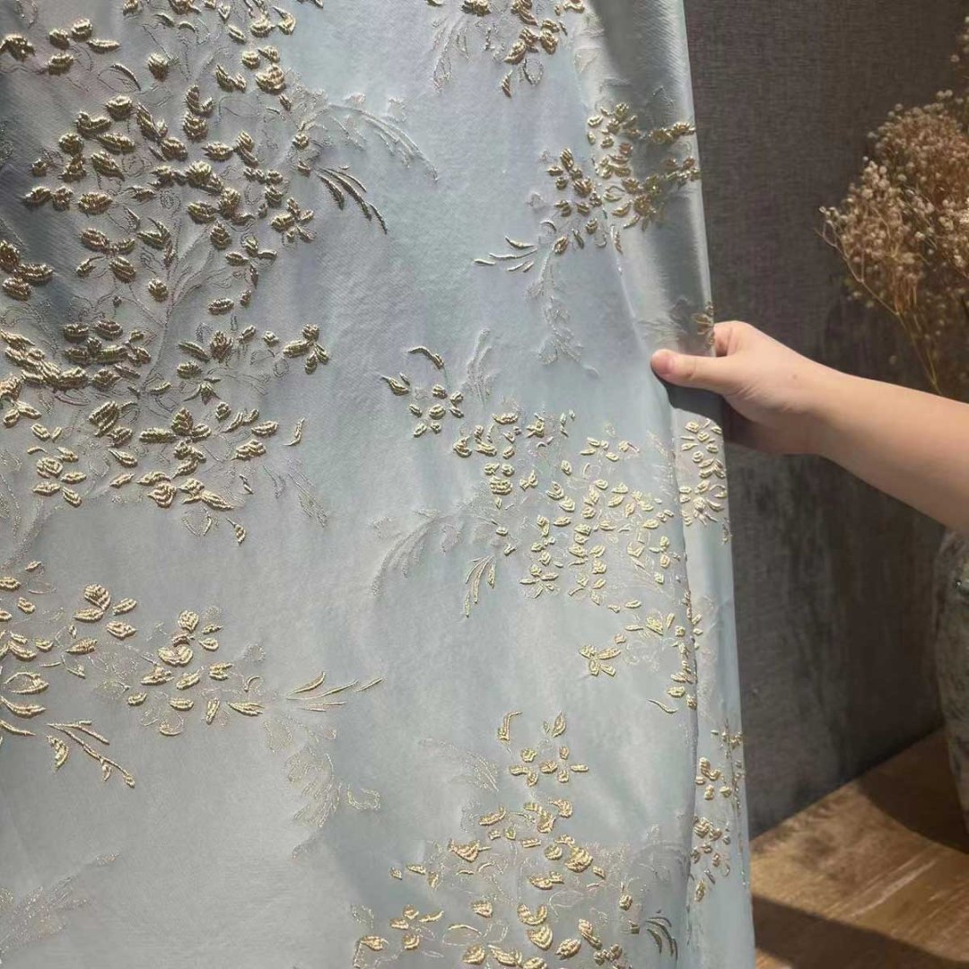 Mit Perfektion gefertigt, strahlen die seidig hellblauen Springtime Bouquet Vorhänge eine raffinierte Eleganz aus. Mit filigranen Zweigmotiven, die zart mit abstrakten Blumen verziert sind, hebt dieser Vorhang Ihr Dekor mühelos mit seinem subtilen Charme hervor. Unsere maßgefertigten Blumenvorhänge werden sorgfältig nach Ihren spezifischen Wünschen gefertigt. Sie sind in einer Vielzahl von Aufhängungsarten erhältlich, die Ihrem Geschmack entsprechen, darunter Schlaufenschlauch, Ösen, Zwickfalten, Maßfalten, umgekehrte Kastenfalten, Schlaufen, Rückenschlaufen, Stangentasche und Wellenvorhang. Entdecken Sie, wie abstrakte Vorhänge jeden Raum erneuern können.