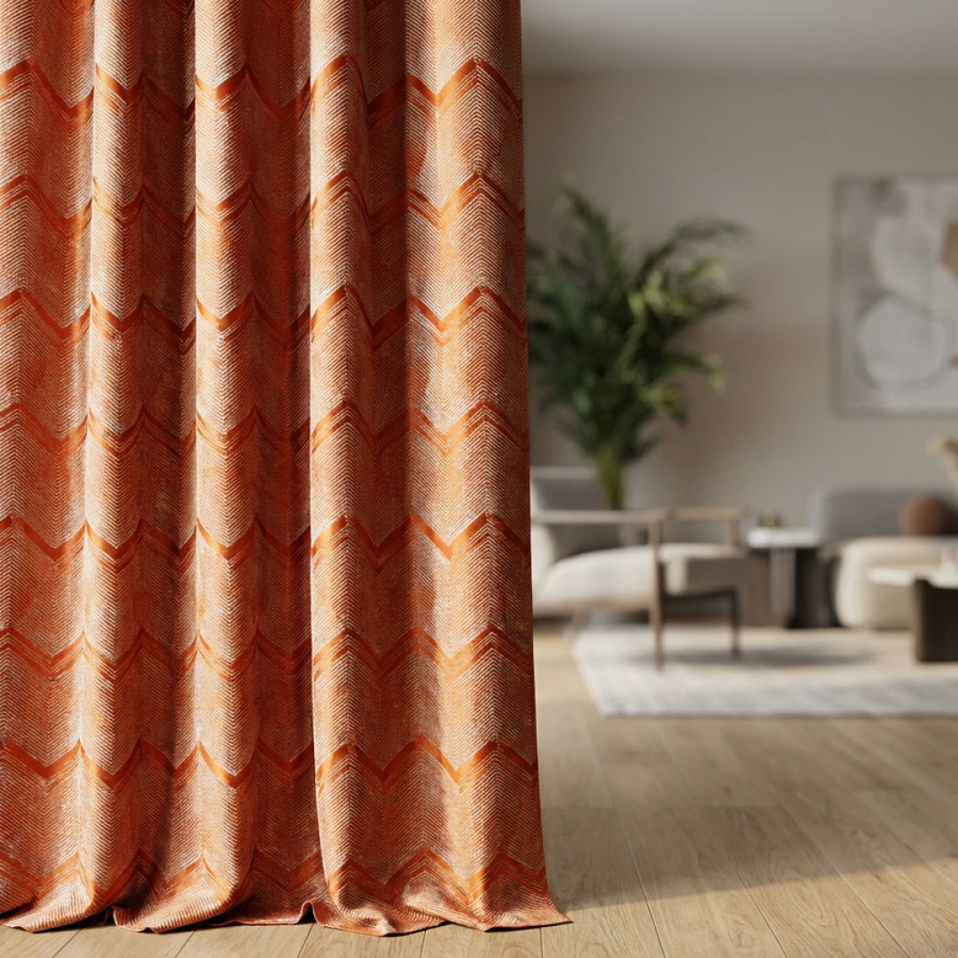 Luxuriöse Jacquard-Seidenvorhänge mit Zickzackmuster bringen Stil und Lebendigkeit in Ihren Raum. Unsere maßgefertigten Vorhänge werden sorgfältig nach Ihren individuellen Wünschen gefertigt. Sie sind in verschiedenen Falten erhältlich, um Ihrem Geschmack gerecht zu werden, darunter Schlingen, Ösen, Kuplen, Wellenfalten, umgekehrte Kastenfalten, Schlaufen, Rückenschlaufen, Schlauchtasche und Wave-Vorhänge. Entdecken Sie, wie Chevron- / Zickzackvorhänge jeden Raum aufwerten können.