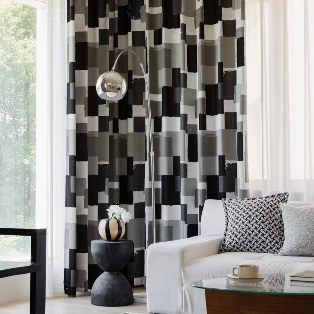 Inspiriert von der geometrischen Präzision von Stadtbildern, zeichnet sich dieser Stoff durch überlappende Rechtecke in Schwarz-, Weiß- und Grautönen aus. Das Design vermittelt ein Gefühl von Ordnung und Chaos, ideal um Ihrem Raum eine urbane Note zu verleihen. Unsere maßgefertigten Vorhänge werden sorgfältig nach Ihren individuellen Wünschen gefertigt. Sie sind in verschiedenen Faltenarten erhältlich, die Ihrem Geschmack entsprechen, darunter Schlingen, Ösen, Stillfalten, Kappenbänder, umgekehrte Kastenplissees, Schlaufen, Rückenschlaufen, Stangentasche und Wellenvorhänge. Entdecken Sie, wie geometrische Vorhänge jeden Raum modernisieren können.