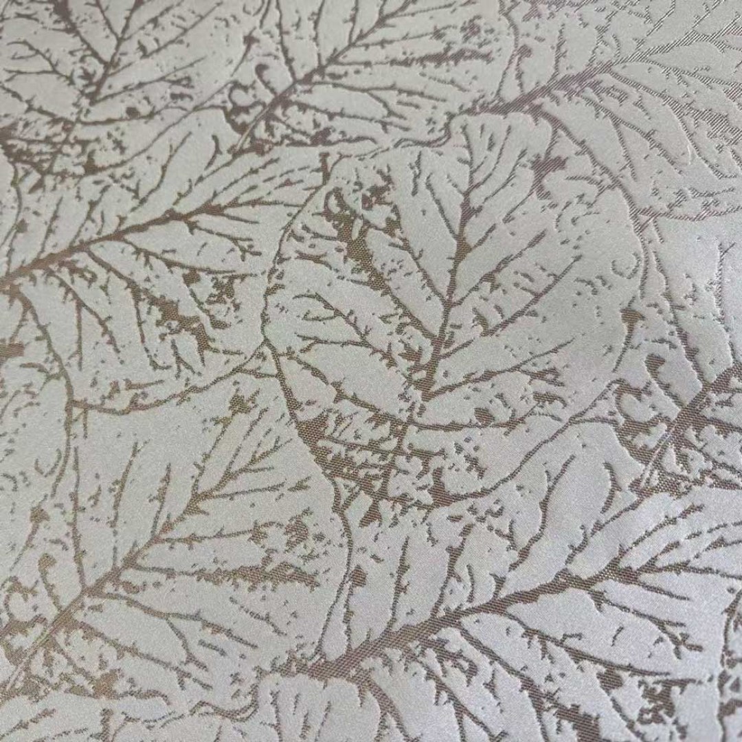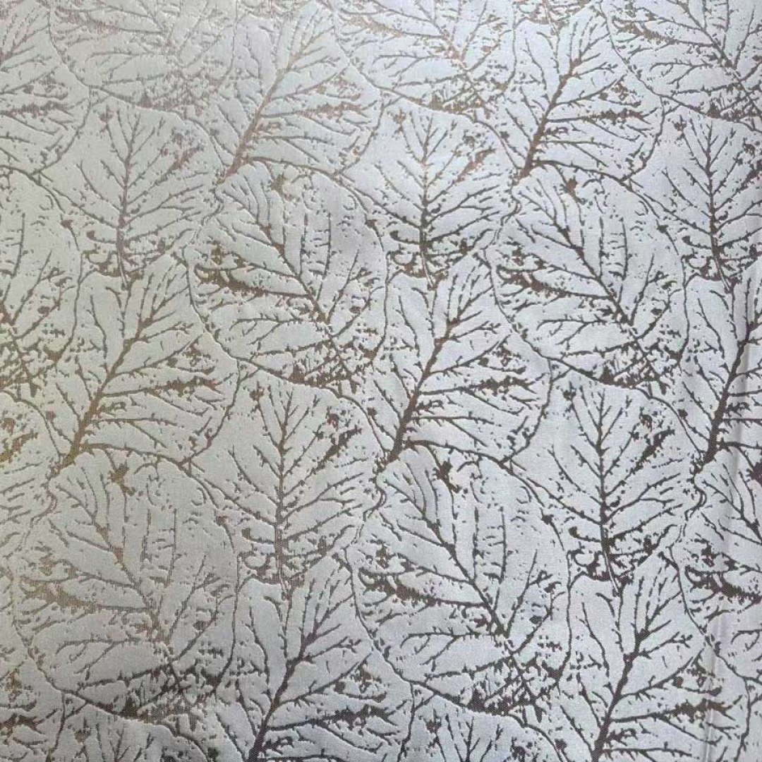 Ein eleganter, von der Natur inspirierter Vorhang mit detaillierten Blattmotiven in einem gedämpften, erdigen Ton. Dezente metallische Akzente heben die feinen Blattadern hervor und verleihen Tiefe und Textur.