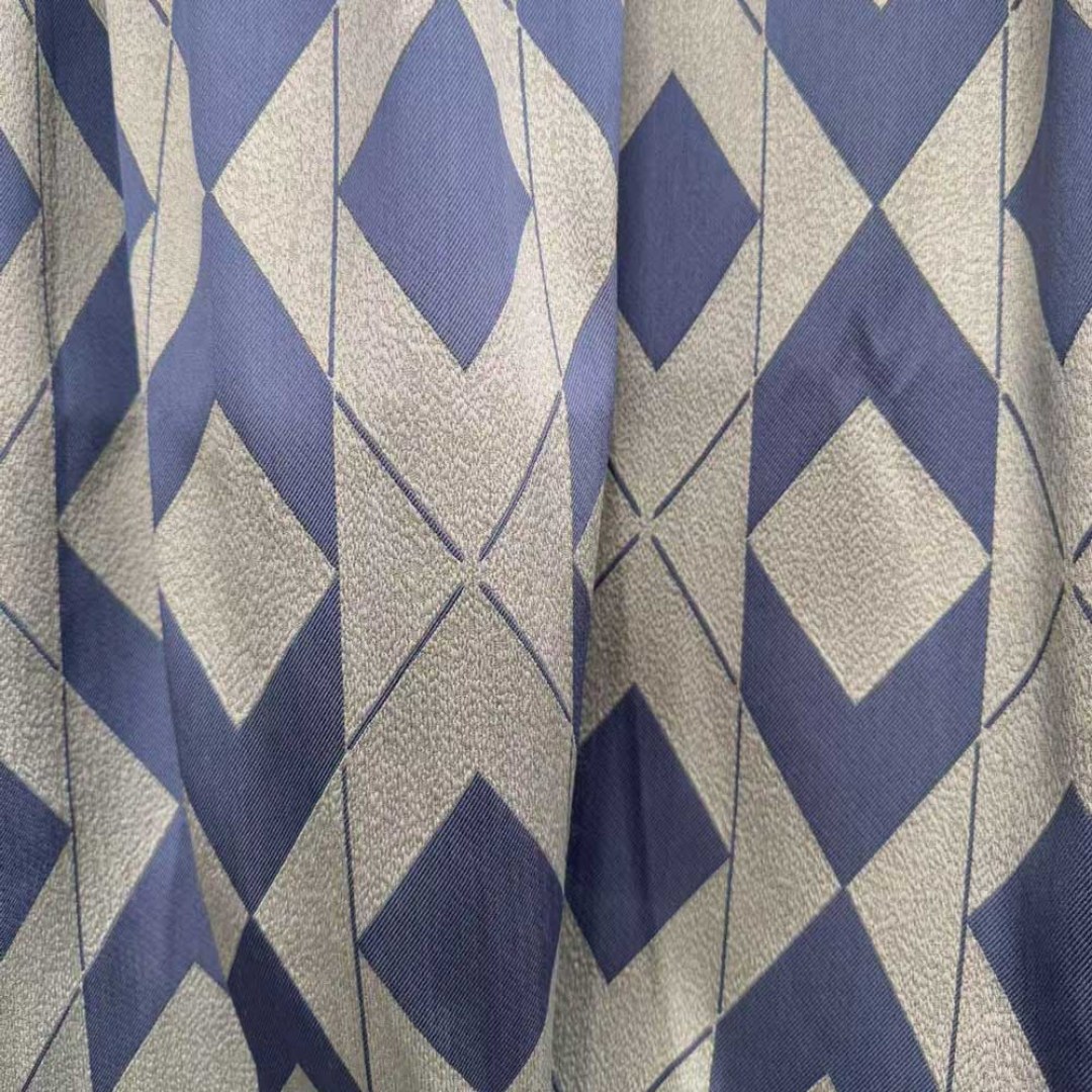Ein elegantes Design mit ineinandergreifenden Diamantformen in tiefem Blau und schimmerndem Silber für einen dynamischen, auffälligen Effekt. Unsere maßgefertigten Vorhänge werden sorgfältig nach Ihren individuellen Wünschen gefertigt. Sie sind in einer Vielzahl von Aufhängungsarten erhältlich, die Ihrem Geschmack entsprechen, darunter Schlaufenschlauch, Ösen, Zwickfalten, Wellenschlauch, umgekehrte Zwickfalten, Schlaufen, Rückenschlaufen, Stangentasche und Wave-Vorhang. Entdecken Sie, wie geometrische Vorhänge jeden Raum modernisieren können.