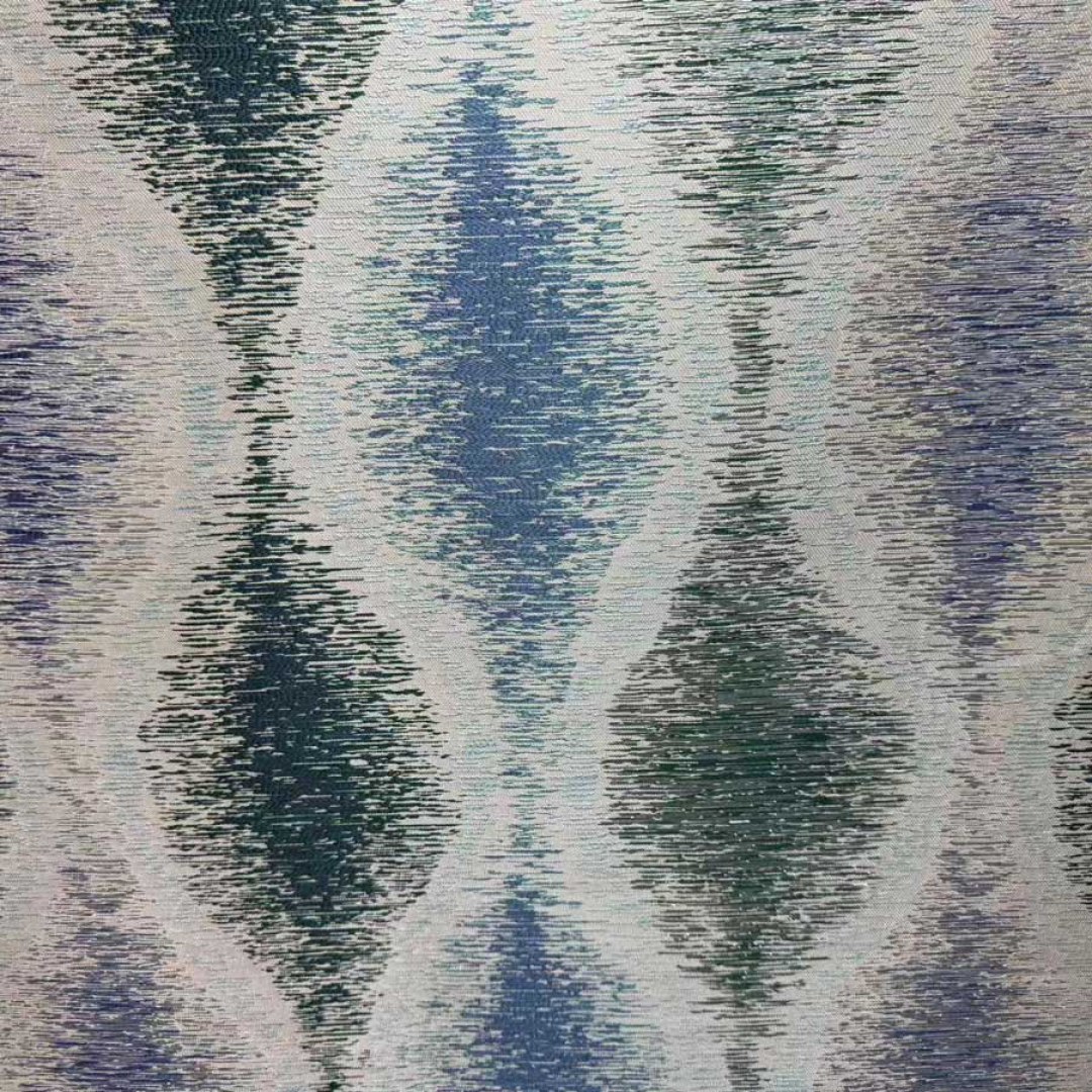 Ikat Ripples fängt die fließende Eleganz von Wasser in Bewegung ein, kombiniert mit der weichen Geometrie des Ikat-Webens. Das fließende Wellenmuster verleiht ein Gefühl von Bewegung und Ruhe, während zarte Silberfäden subtil im Jacquardgewebe schimmern.