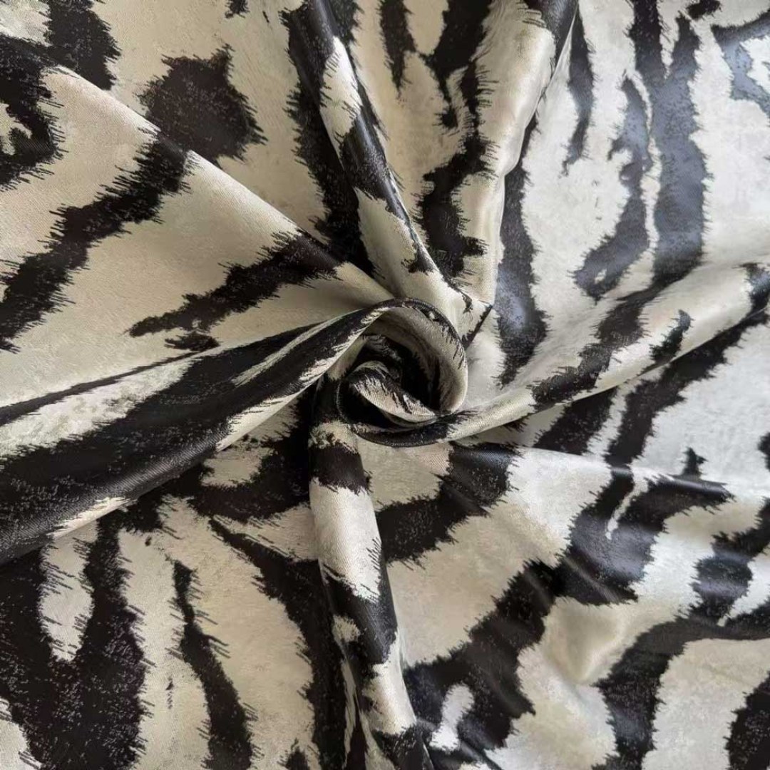Ideal für auffällige Vorhänge oder hochwertige Innenräume, verleiht dieser Stoff sowohl Wohn- als auch Gewerberäumen einen Hauch von ungezähmter Raffinesse.