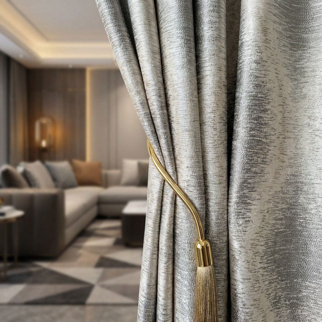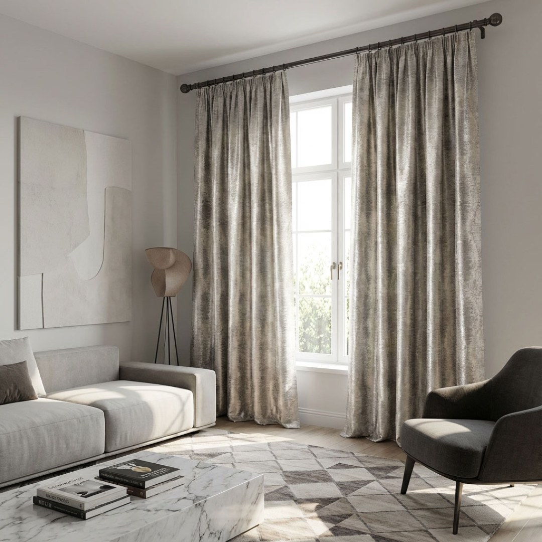 Ikat Ripples fängt die fließende Eleganz von Wasser in Bewegung ein, kombiniert mit der weichen Geometrie des Ikat-Webens. Das fließende Wellenmuster verleiht ein Gefühl von Bewegung und Ruhe, während zarte Goldfäden subtil im Jacquardgewebe schimmern. Dieser reich strukturierte Stoff bringt einen unaufdringlichen Hauch von Luxus in jeden Raum und verbindet Tradition mit moderner Raffinesse.Unsere maßgefertigten Vorhänge werden sorgfältig nach Ihren individuellen Vorlieben gefertigt. Sie sind in einer Vielzahl von Kopfformen erhältlich, die Ihrem Geschmack entsprechen, darunter Schlingen, Ösen, Plissees, maßgefertigte Plissees, umgekehrte Kastenfaltung, Schlaufen, Rückenschlaufen, Stangentasche und Wellenvorhänge.Entdecken Sie, wie Chevron-/Wellenvorhänge jeden Raum aufwerten können.