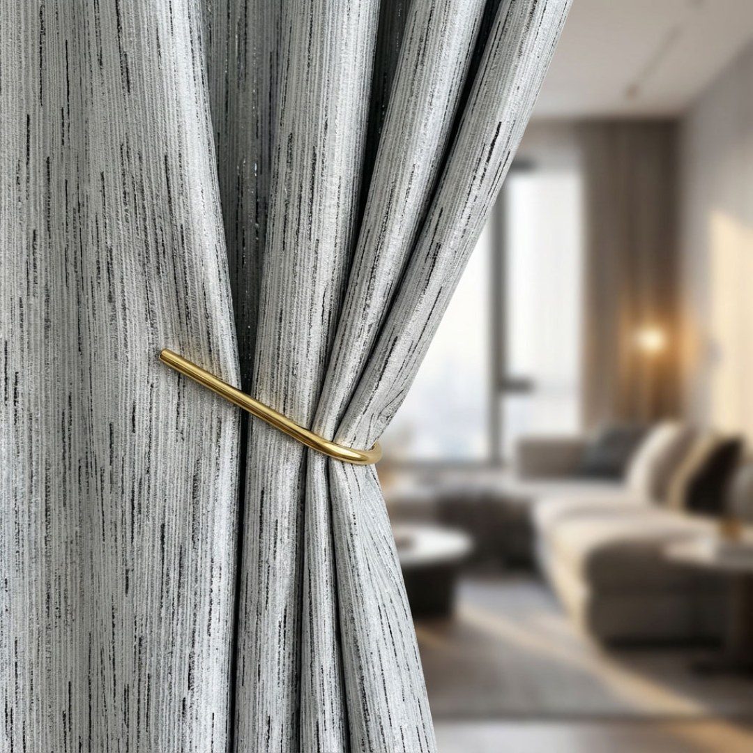 Bringen Sie raffinierten Glanz in Ihr Zuhause mit Vorhängen, die aus schimmerndem Stoff gewebt und durch zarte metallische Akzente veredelt sind. Das fließende Schimmern erinnert an herabfallendes Licht und verleiht jedem Raum Tiefe und Eleganz. Perfekt maßgeschneidert, verkörpern diese Vorhänge moderne Luxus und zeitlose Strahlkraft, entworfen für Interieure, die Anspruch an Exklusivität stellen.