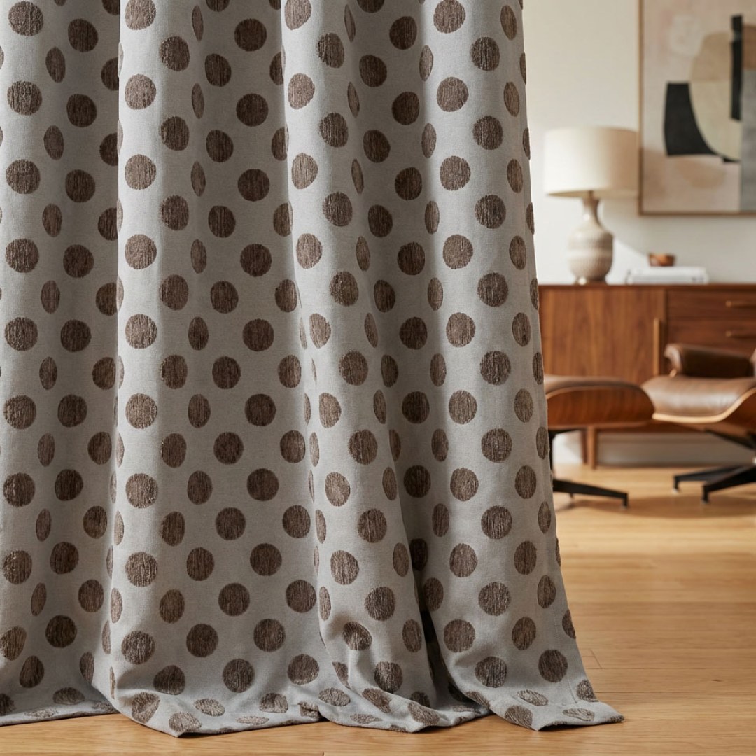Dottie Delight zeichnet sich durch ein zeitloses Polka-Dot-Muster und eine weiche Chenille-Textur aus, die eine Vielzahl von Einrichtungsstilen ergänzt – von Mid-Century Modern bis hin zu zeitgenössisch und gemütlich-leger. Das verspielte, aber raffinierte Design verleiht jedem Raum Persönlichkeit und passt sich mühelos verschiedenen Dekorthemen und Farbpaletten an.