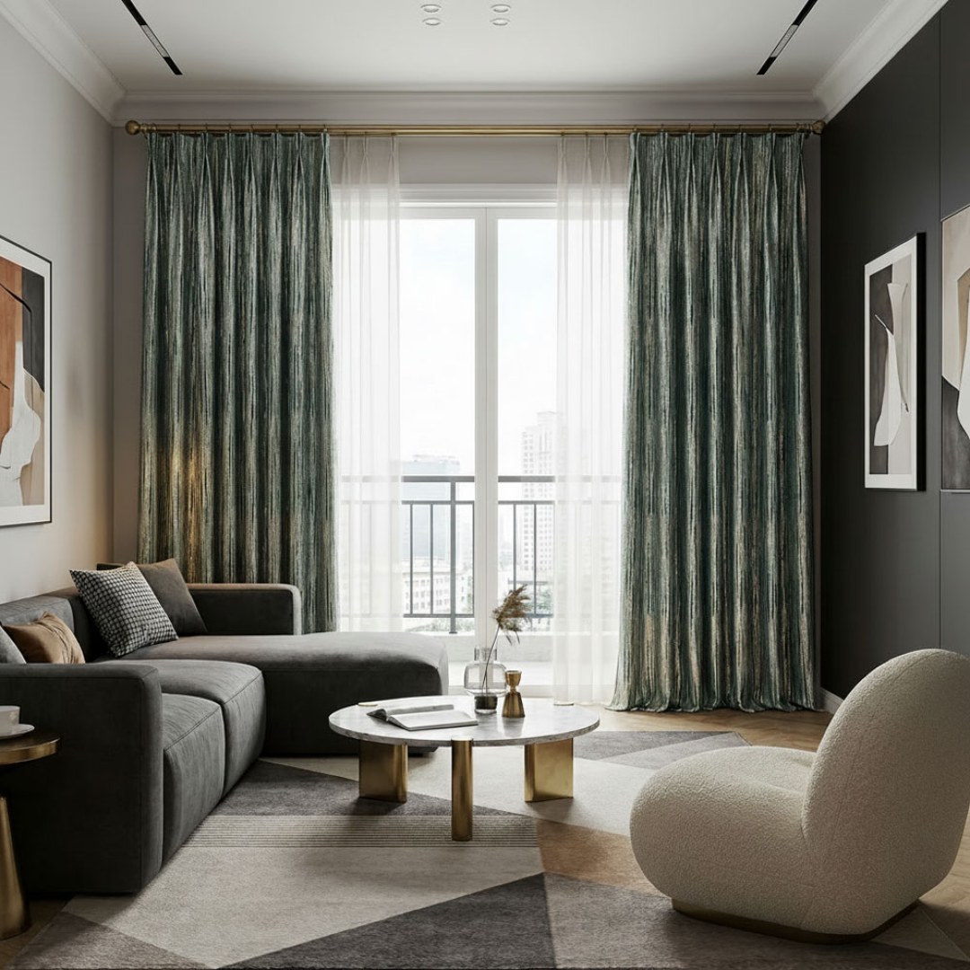 Unsere maßgefertigten Vorhänge werden sorgfältig nach Ihren individuellen Wünschen gefertigt. Sie sind in einer Vielzahl von Kopfformen erhältlich, die Ihrem Geschmack entsprechen, darunter Schlaufenschlauch, Ösen, Zwickfalten, Wellenschlauch, umgekehrte Kastenfalten, Schlaufen, Rückenschlaufen, Stangentasche und Wave-Vorhang.