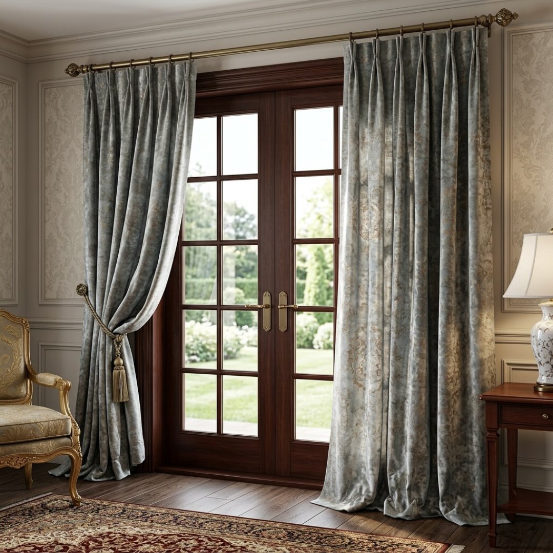 Erhöhen Sie Ihren Raum mit zeitloser Eleganz. Diese luxuriösen Samtvorhänge verfügen über ein klassisches Damask-Muster mit subtilen vergoldeten Akzenten, die Tiefe und Luxus zu jedem Raum hinzufügen. Gefertigt aus weichem, üppigem Samt, drapieren sie schön und bieten einen Hauch von Raffinesse und Stil. Perfekt für Wohnzimmer, Schlafzimmer oder formale Räume, die einen raffinierten, kulturell inspirierten Look suchen. Unsere gemachten Samtvorhänge zu messen sind sorgfältig gestaltet, um Ihre spezifischen Vorlieben zu erfüllen. Sie kommen in einer Vielzahl von Rubrik-Stile zu Ihrem Geschmack, einschließlich Bleistift-Falte, Öse, Pinch-Falte, maßgeschneiderte Falten, invertierte Box-Falte, Tab Top, Rücken-Tab, Stabtasche und Wellenvorhang. Entdecken Sie die Freude von Damask.