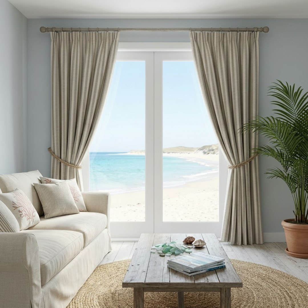 Coastal Weave Driftwood Braun Gestreifte Natur Leinen Baumwolle Mischung Vorhänge