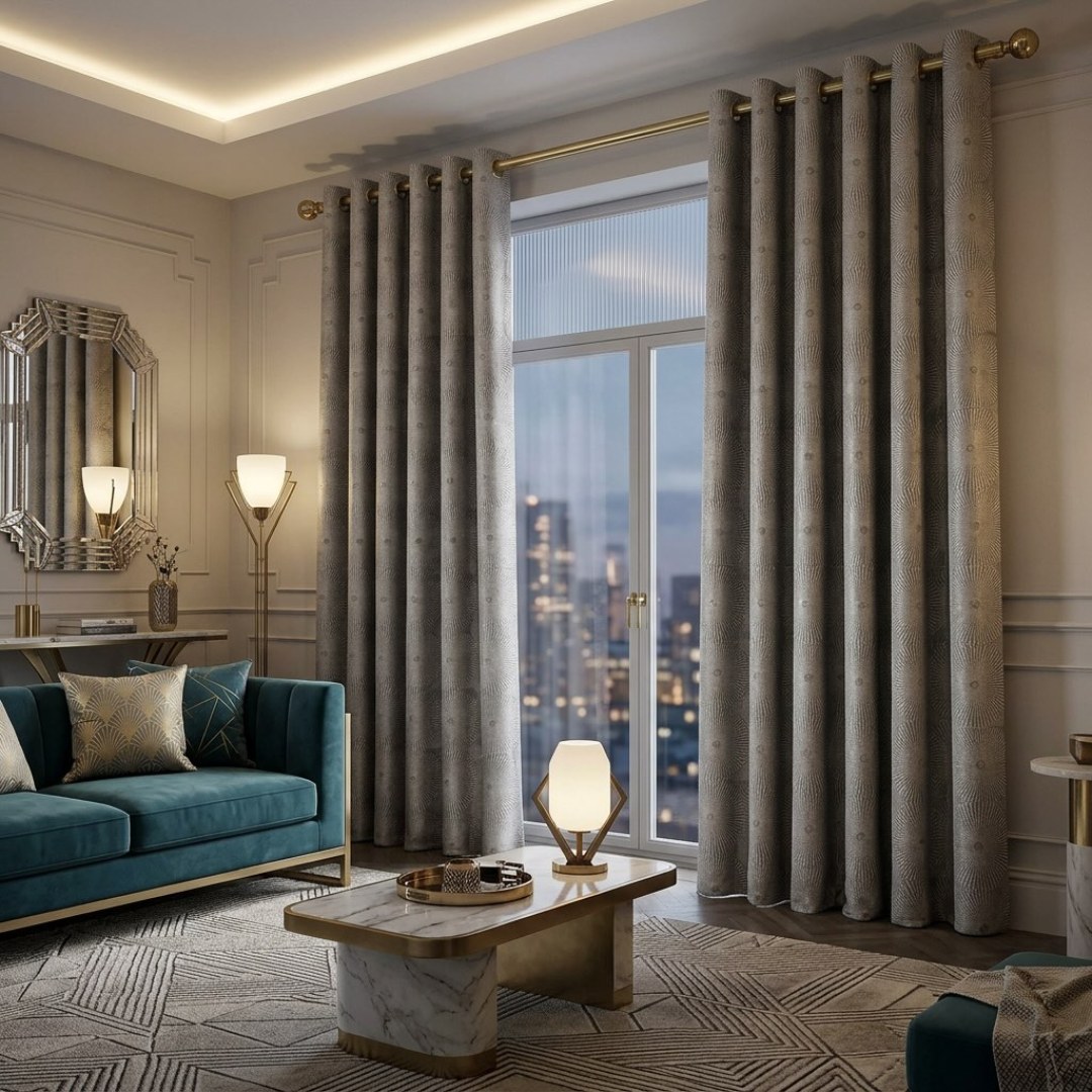 Erhöhen Sie Ihren Platz mit dem Lily Pad Jacquard, einem raffinierten Art Deco Vorhang mit einem zeitlosen geometrischen Fanmotiv. Die unterlegte braune Palette und die anspruchsvolle matte Oberfläche bieten einen unterstrichenen, hochwertigen Look, perfekt für benutzerdefinierte Fensterbehandlungen, die klassische Struktur mit moderner Eleganz ausgleichen. Unsere gemachten Vorhänge zu messen sind sorgfältig gestaltet, um Ihre spezifischen Vorlieben zu erfüllen. Sie kommen in einer Vielzahl von Rubrik-Stile zu Ihrem Geschmack, einschließlich Bleistift-Falte, Öse, Pinch-Falte, maßgeschneiderte Falten, invertierte Box-Falte, Tab Top, Rücken-Tab, Stabtasche und Wellenvorhang. Art Deco Vorhänge - die einfachen Möglichkeiten, um Glamour und Luxus zu Ihrem Zuhause hinzuzufügen.