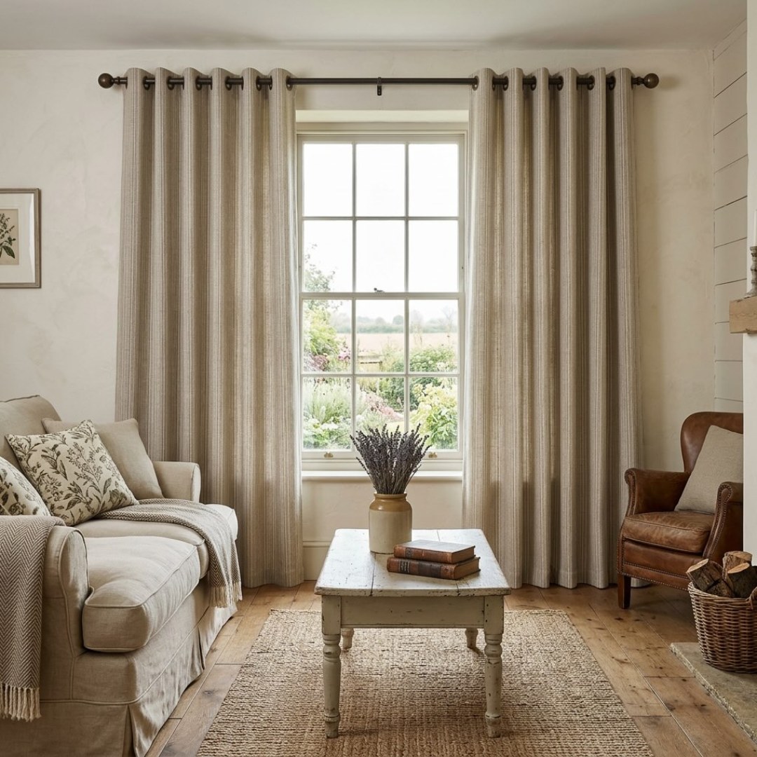 Cottage Flax Kaffee Braun Striped Natürliche Bettwäsche Baumwolle Mischung Vorhänge