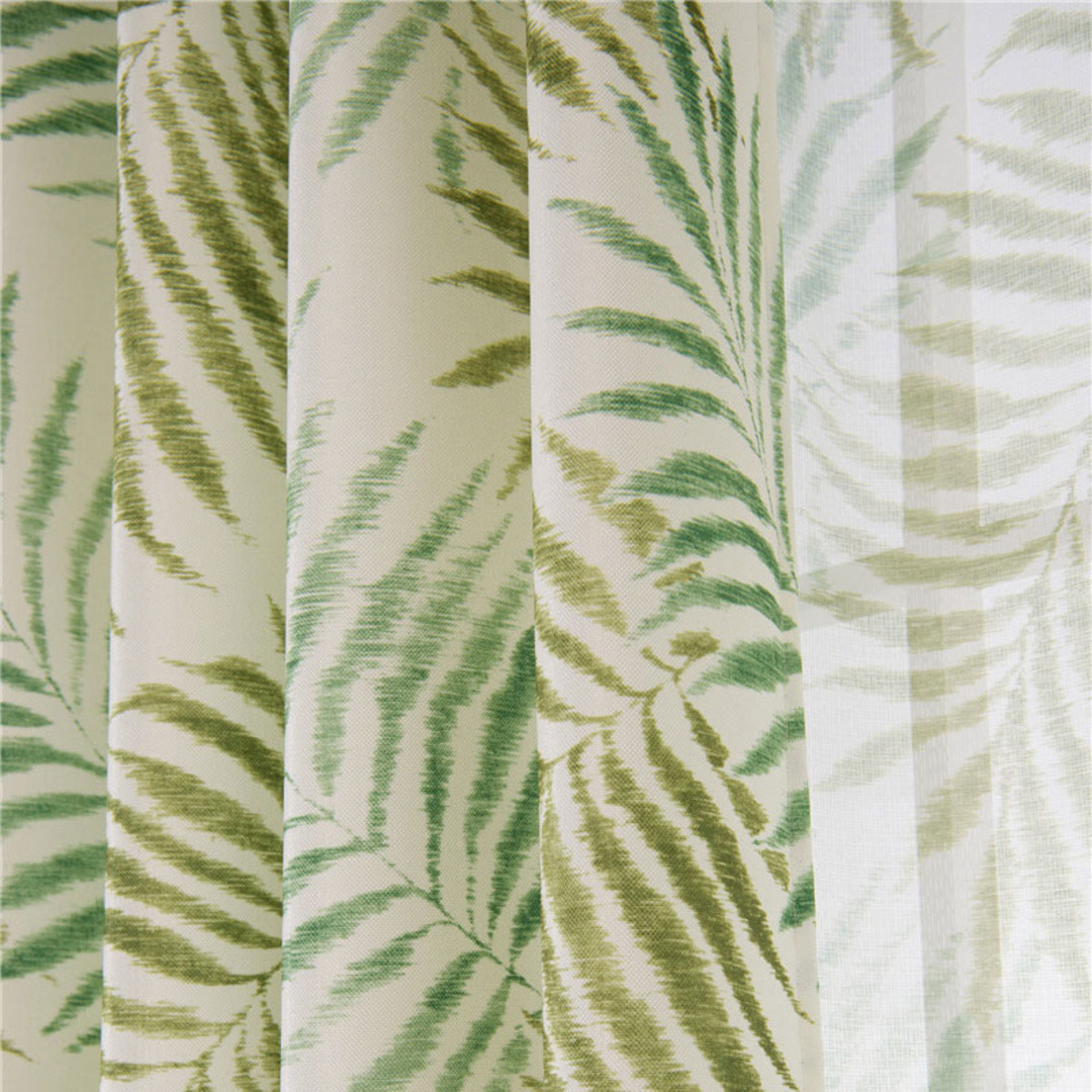 Der weich grüne Palmenprint-Vorhang ist perfekt, um Ihrem Zuhause Farbe und etwas mehr Persönlichkeit zu verleihen. Probieren Sie eine neue und aufregende Art, Ihren Raum mit tropischem Flair zu dekorieren.