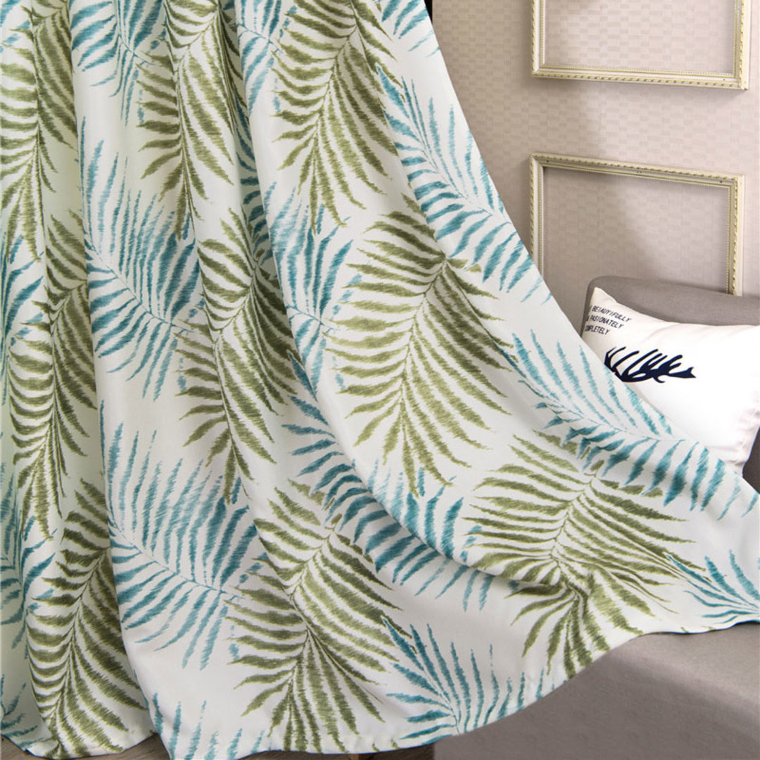 Der weiche, blau palmengemusterte Vorhang ist perfekt, um Ihrem Zuhause Farbe und etwas mehr Persönlichkeit zu verleihen. Probieren Sie eine neue und aufregende Art, Ihren Raum mit tropischem Flair zu dekorieren.