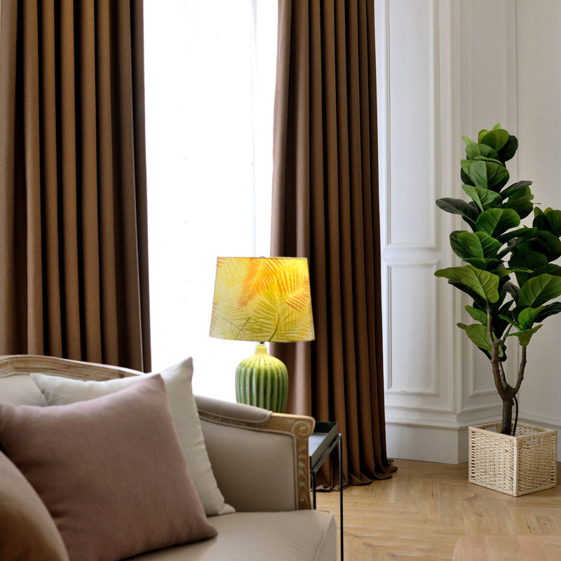 Diese Vorhänge sind ordentlich mit einem schwereren, vollem Material gestapelt. Der Farbton verleiht dem Raum ein sauberes und beruhigendes Gefühl. Dieser weiche Stoff ist ein Verdunkelungsmaterial und bietet ohne zusätzliche Beschichtung einen Verdunkelungseffekt von 85% bis 95%. Je dunkler die Farbe, die Sie wählen, desto besser der erzielbare Verdunkelungseffekt. Unsere maßgefertigten Vorhänge werden nach Ihren genauen Anforderungen gefertigt und sind in verschiedenen Aufhängungsarten erhältlich – Ösen, Schlaufen, Faltenband, Doppelstich, Kräuselband oder Hohlsaum. Bestellen Sie passende Gardinenbänder und Kissen, um das gesamte Raumambiente zu unterstreichen.