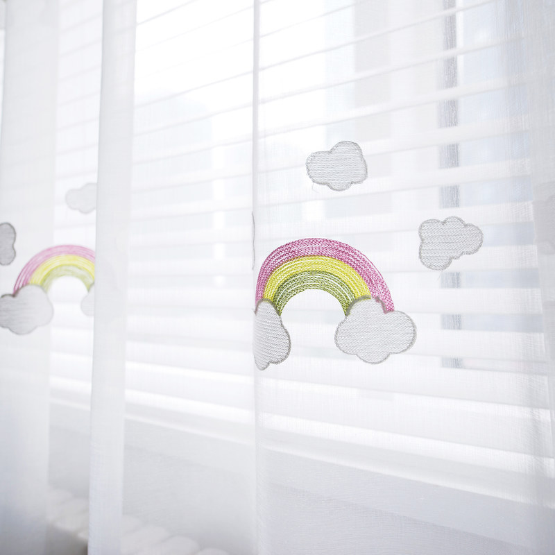 Tanze mit Feen, reite ein Einhorn, schwimme mit Meerjungfrauen, jage Regenbögen. In jedem Kind verbirgt sich ein Regenbogen, der darauf wartet, zu leuchten. Inspiriert von diesen wunderschönen Regenbogen-Voile-Vorhängen.
