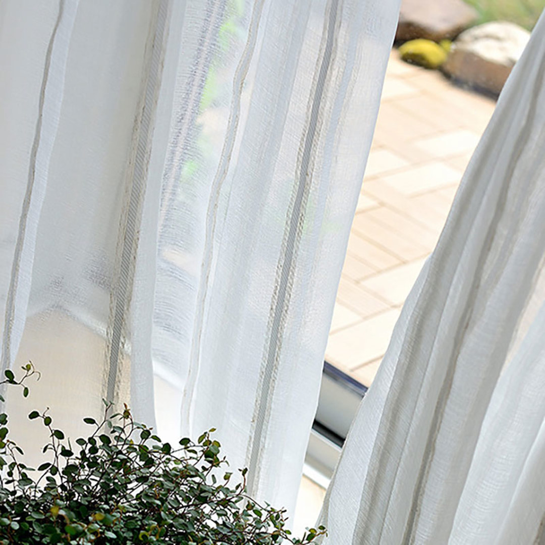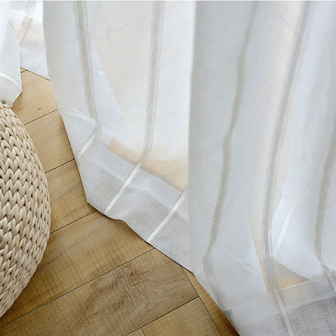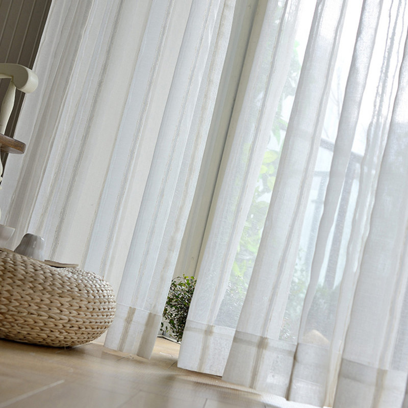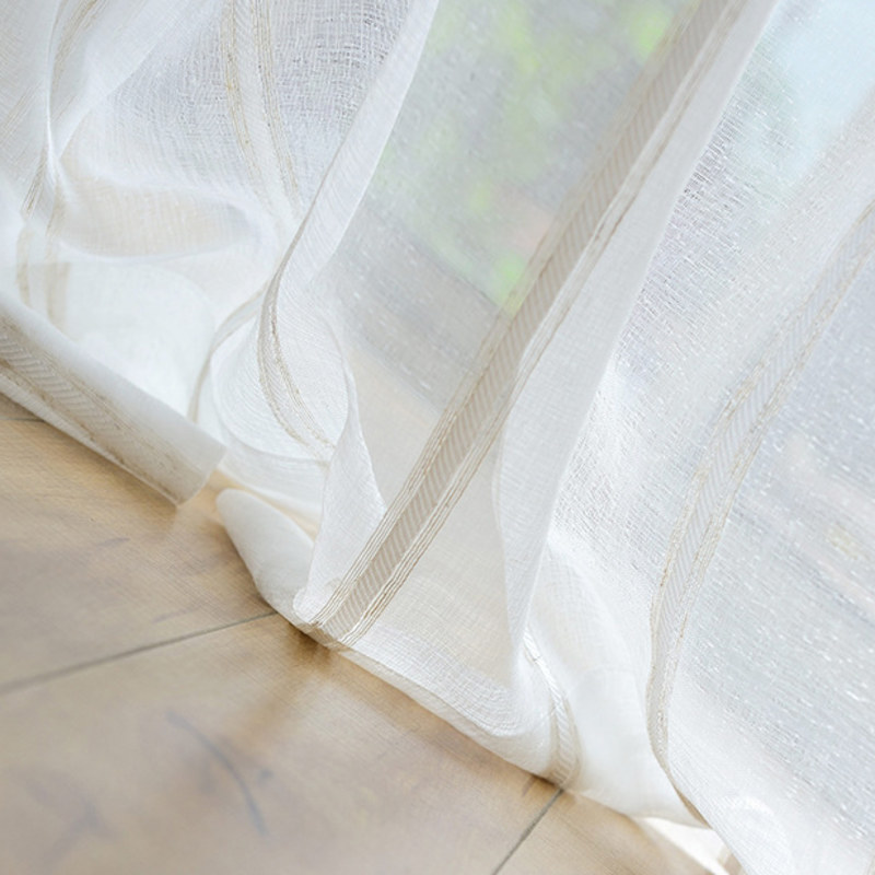 Die Merlin schlichten weißen vertikal gestreiften Voilegardinen wirken elegant und stilvoll. Diese beeindruckenden Voilegardinen bieten ausreichend Privatsphäre und lassen gleichzeitig viel Licht in Ihren Raum, wodurch sie einen Hauch von Klasse verleihen. Unsere maßgefertigten Voilegardinen werden genau auf Ihre Fensteranforderungen zugeschnitten und sind in verschiedenen Falten erhältlich – Schlingen, Ösen, Schlaufen, Zwickfalten, Maßgefertigte Falten, umgekehrte Falten, Stangentasche und Wellen. Entdecken Sie, wie gestreifte Voilegardinen jeden Raum aufwerten können.