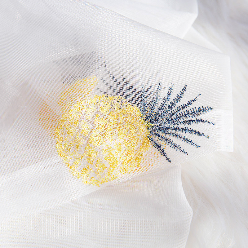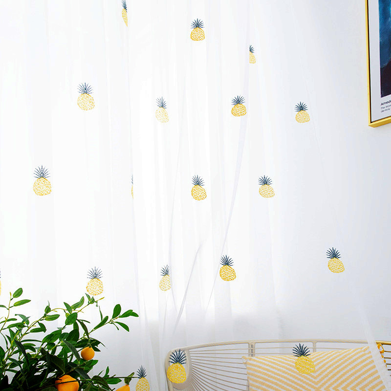 Der Calypso transparente Voile-Vorhang mit bestickten tropischen Ananas, die verspielt verteilt sind, lässt Sie sofort an Sommer denken. Die reichen Texturen und die wunderschöne Stickerei lassen Sie von Sonnentagen am Strand träumen.