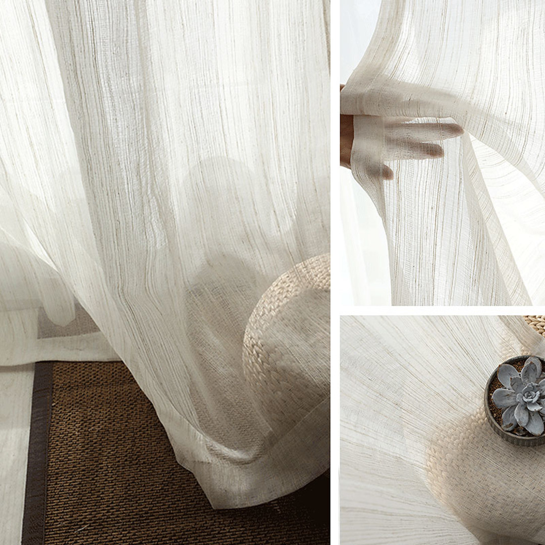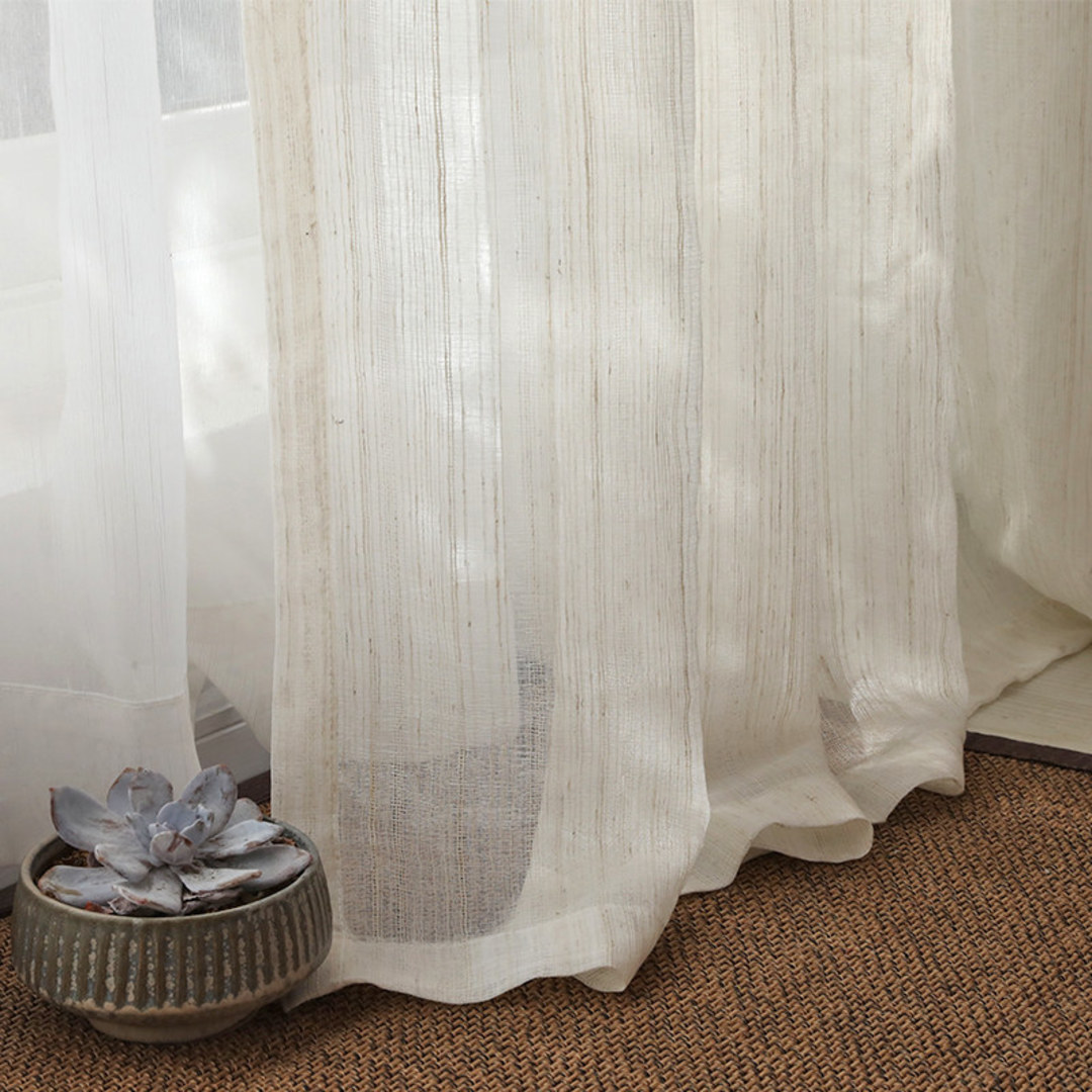 Diese einzigartigen Leinen-Voile-Vorhänge ermöglichen Privatsphäre, ohne das gesamte Licht zu blockieren, was sie perfekt für French-Door-Vorhänge und Schiebetürvorhänge macht. Die zarten vertikalen, dünnen Linien brechen das Sonnenlicht auf und verleihen einen Hauch von Eleganz, der jeden Stil ergänzt. Unsere maßgefertigten Vorhänge werden sorgfältig nach Ihren spezifischen Wünschen gefertigt. Sie sind in einer Vielzahl von Kopfformen erhältlich, die Ihrem Geschmack entsprechen, darunter Schlitze, Ösen, Zwickfalten, Maßfalten, umgekehrte Kastenfalten, Schlaufen, Rückenschlaufen, Stangentasche und Wellenvorhänge.Entdecken Sie weitere atemberaubende gestreifte Voile-Vorhänge.