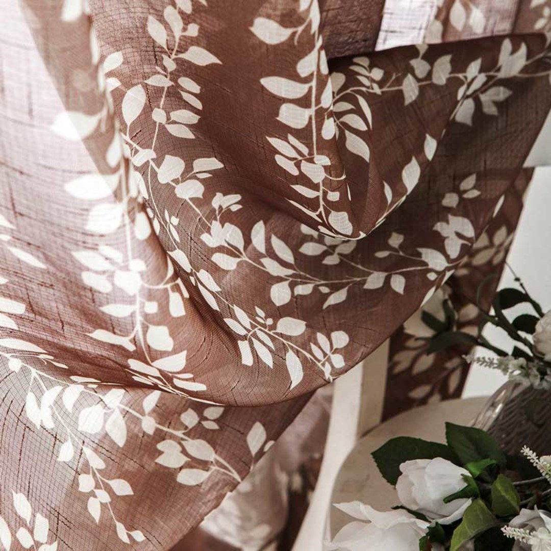 Die wunderschöne kaffeebraune Pascal-Schleiergardine lässt viel Licht in den Raum und bietet gleichzeitig viel Privatsphäre. Der auffällige Blattdruck, der sich über diese halbtransparenten Schleiergardinen erstreckt, bringt eine ruhige Outdoor-Atmosphäre in den Raum, in dem sie aufgehängt werden. Unsere maßgefertigten Schleiergardinen werden auf Ihre genauen Fensteranforderungen zugeschnitten und sind in einer Auswahl an Kopfformen erhältlich – Ösen, Schlaufen, Falten, Gepließte Falten, Maßgefertigte Falten, Zwickfalten, umgekehrte Falten, Stangentasche und Wellenvorhänge. Entdecken Sie, wie florale Schleiergardinen jeden Raum aufwerten können.