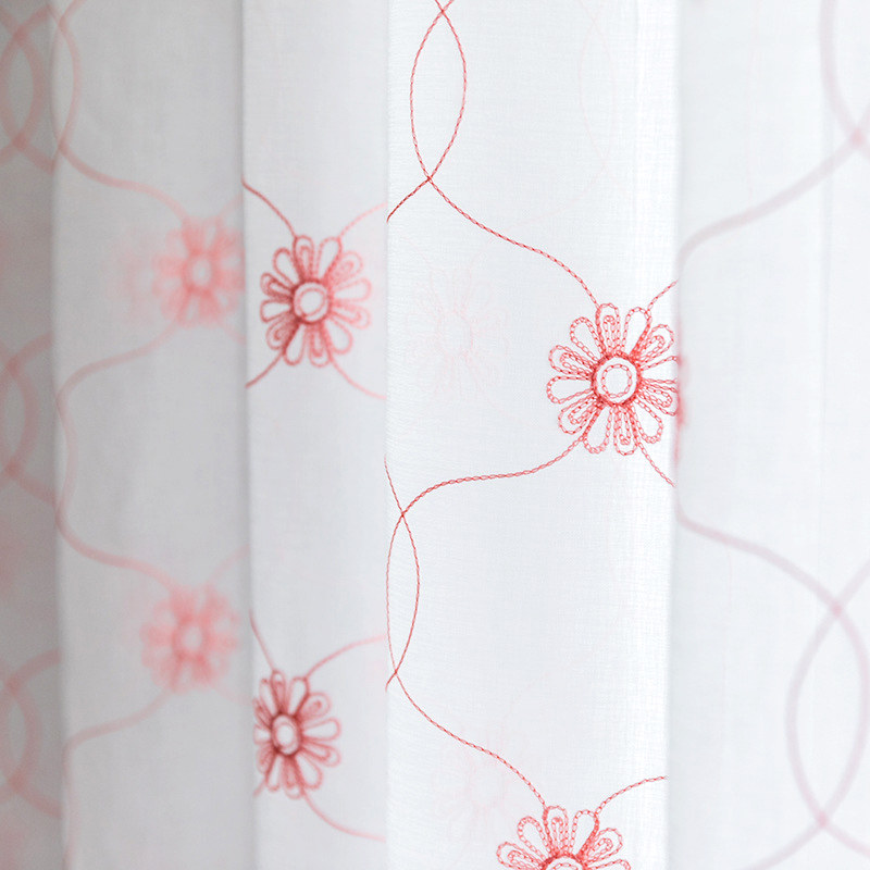 Die Flora rosa Gänseblümchen-Ranken-Schleiergardinen haben wunderschön bestickte rosa Gänseblümchenketten-Blumendetails, die über sie verlaufen. Das atemberaubende Gänseblümchenketten-Detail bricht das Sonnenlicht spielerisch auf und schafft ein Gefühl der Ruhe, während es dennoch ausreichend Privatsphäre bietet. Unsere maßgefertigten Schleiergardinen werden individuell nach Ihren genauen Fensteranforderungen hergestellt und sind in verschiedenen Kopfformen erhältlich – Ösen, Schlaufen, Plisseekraftband, doppelter Plisseekraftband, Zwickfalten oder Stangentasche. Entdecken Sie, wie Gänseblümchen-Ranken-Schleiergardinen jeden Raum aufwerten können.