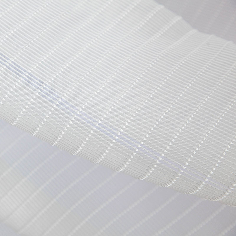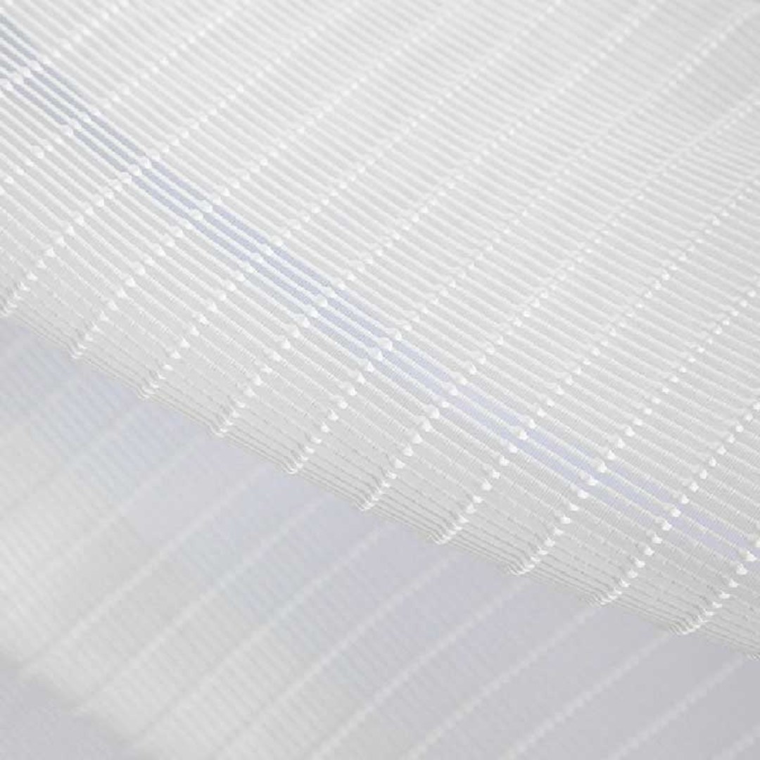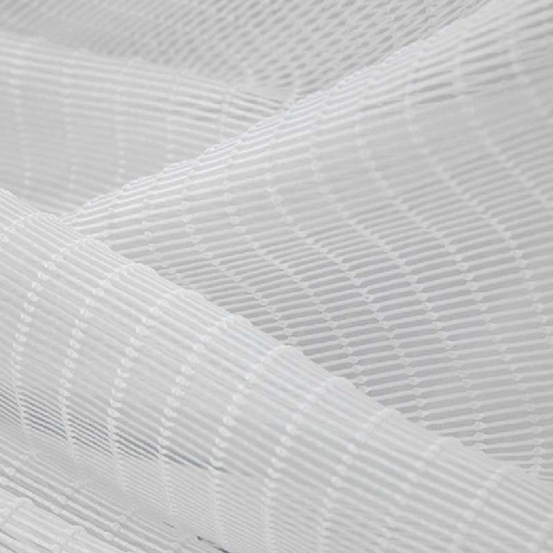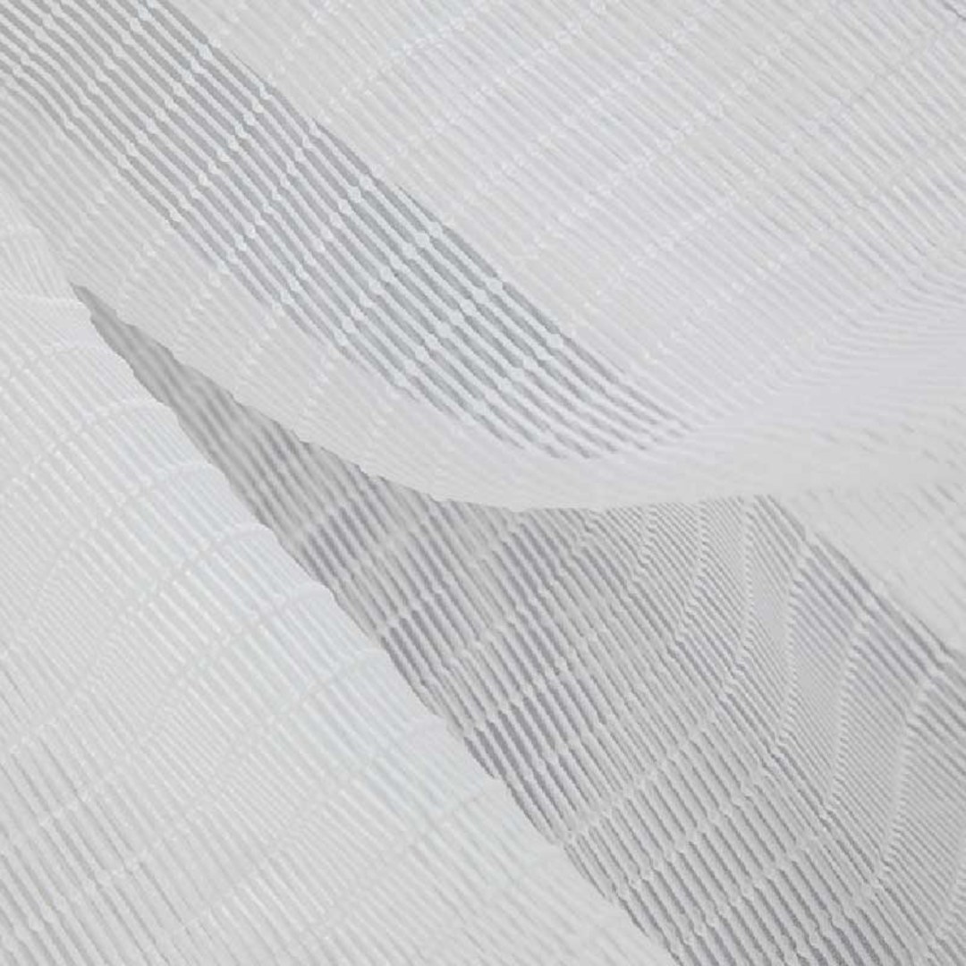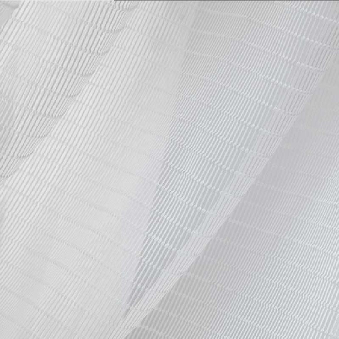 Ein moderner Voile-Stoff mit einer strukturierten 3D-Jacquard-Webung. Mit einem erhabenen Streifenmuster, das Tiefe verleiht und das Licht sanft filtert – perfekt für stilvolle, luftige Innenräume.