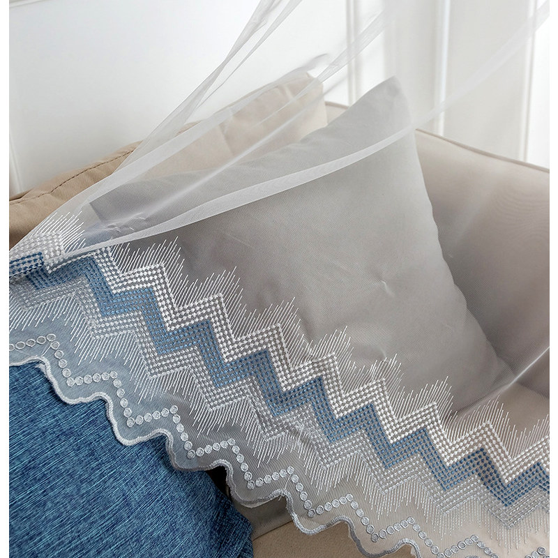Unsere Zickzack Weiß Blau und Grau Schiere Voile Vorhänge beinhalten so viele Details. Dieses verspielte Muster verbindet ein Farbschema und eine geschwungene Kante verleiht ihnen ein elegantes Finish. Diese transparenten Vorhänge lassen sanftes Licht herein, während das Zickzack-Design es aufbricht. Unsere maßgefertigten Vorhänge werden sorgfältig gefertigt, um Ihren spezifischen Vorlieben gerecht zu werden. Sie sind in einer Vielzahl von Kopfformen erhältlich, die Ihrem Geschmack entsprechen, darunter Wellenschlagfalte, Ösen, Zwickfalte, Schrägfalte, umgekehrte Kastenfalte, Schlaufen, Rückenschlaufen, Stangentasche, Wave und Türnetzvorhänge.Entdecken Sie, wie Chevron Voile Vorhänge jeden Raum aufwerten können. *HINWEIS: Aufgrund der geschwungenen Kante dieser Vorhänge informieren Sie uns bitte, wenn Sie Gewichte hinzufügen möchten, ob Sie die geschwungene Kante beibehalten oder gerade schneiden möchten.