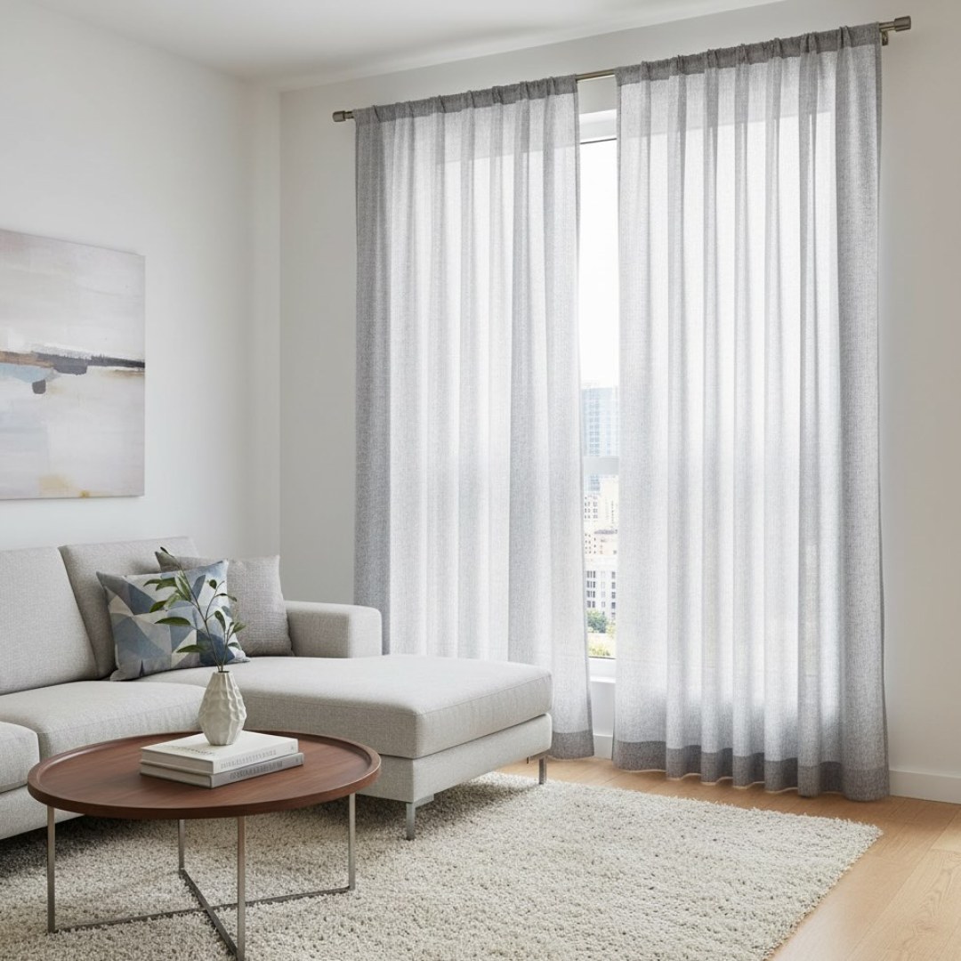 Frisch, sauber, hell und luftig – die wunderschönen grauen schweren Voile-Vorhänge helfen Ihnen, die Dinge positiv zu sehen. Unsere maßgefertigten Voile-Vorhänge werden sorgfältig nach Ihren spezifischen Wünschen gefertigt. Sie sind in einer Vielzahl von Aufhängungsarten erhältlich, die Ihrem Geschmack entsprechen, darunter Schlingen, Ösen, Plissees, Wellenschlagfalten, umgekehrte Kastenfalten, Schlaufen, Rückenschlaufen, Tunnelzug und Wave-Vorhänge.Entdecken Sie, wie graue Voile-Vorhänge jeden Raum aufwerten können.