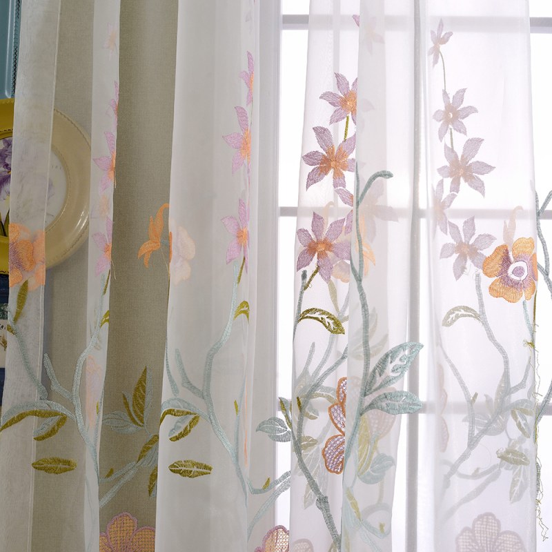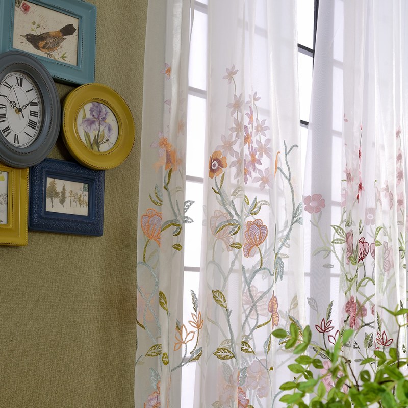 Sommerzeit … die Brise ist sanft und die Blumen blühen. Lassen Sie natürliches Licht mit diesen wunderschönen, bestickten Organza-Vorhängen herein.