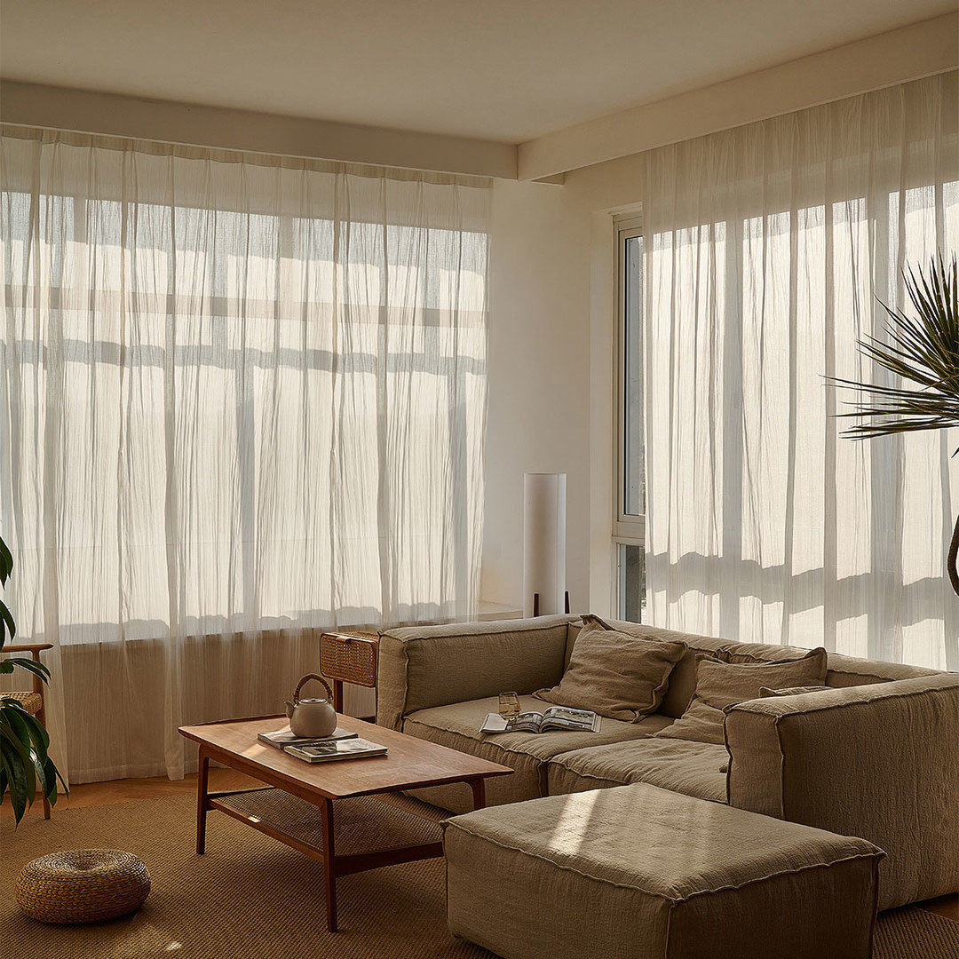 Knitter- oder zerknitterter Voilevorhang hat in den letzten Jahren zunehmend an Beliebtheit gewonnen. Die reichen Texturen und die wunderschöne Detailverarbeitung bieten einen raffinierten und dennoch luxuriösen Look. Diese einzigartigen Baumwoll-Zerknitter-Voilevorhänge ermöglichen Privatsphäre, ohne das gesamte Licht zu blockieren, was sie perfekt für French-Door-Vorhänge und Schiebetürvorhänge macht. Unsere maßgefertigten Vorhänge werden sorgfältig nach Ihren spezifischen Wünschen gefertigt. Sie sind in einer Vielzahl von Kopfformen erhältlich, die Ihrem Geschmack entsprechen, darunter Schlingen, Ösen, Zwickfalten, Maßfalten, umgekehrte Kastenfalten, Schlaufen, Rückenschlaufen, Stangentasche und Wellenvorhang. Entdecken Sie, wie zerknitterte Voilevorhänge jeden Raum aufwerten können.
