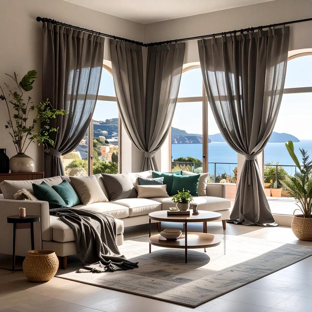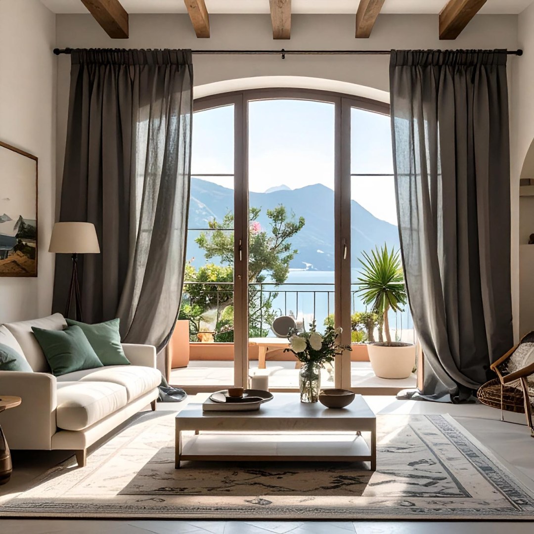Bringen Sie Qualität, Eleganz und Romantik in Ihre Räume mit diesen Vorhängen im provenzalischen Stil aus reinem Leinen. Die knollige Textur, die natürliche Farbe und der Glanz von Leinen sind ihr Hauptreiz. Diese außergewöhnlichen, 100% natürlichen, dunkelgrauen Leinen-Voile-Vorhänge sind klassisch, langlebig und einfach schön. Unsere maßgefertigten Vorhänge werden auf Ihre genauen Fensteranforderungen zugeschnitten und sind in einer Auswahl an Kopfformen erhältlich – Ösen, Schlaufen, Falten, Kringel, Gepließte Falten, umgekehrte Falten, Schlauchtasche und Wellenvorhänge. Entdecken Sie, wie leichte Leinenvorhänge jeden Raum erneuern können.