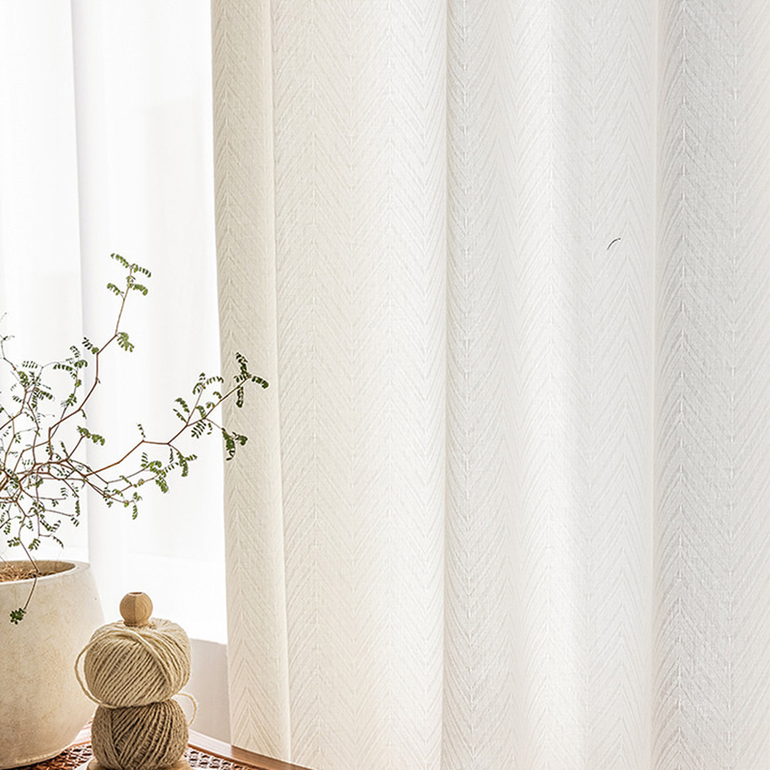 Diese einzigartigen, schweren, halbtransparenten Vorhänge bieten viel Textur mit einem modernen Design. Das Chevron-Strukturmaterial erzeugt ein schönes Detail für Ihr Interieur und wirkt dabei elegant. Unsere maßgefertigten Voile-Vorhänge werden genau nach Ihren Wünschen zugeschnitten und sind in verschiedenen Aufhängungsarten erhältlich – Ösen, Schlaufen, Plisseekraftband, doppelter Hohlsaum, dreifacher Hohlsaum und Wellenvorhänge. Entdecken Sie, wie Chevron-Voile-Vorhänge jeden Raum aufwerten können.