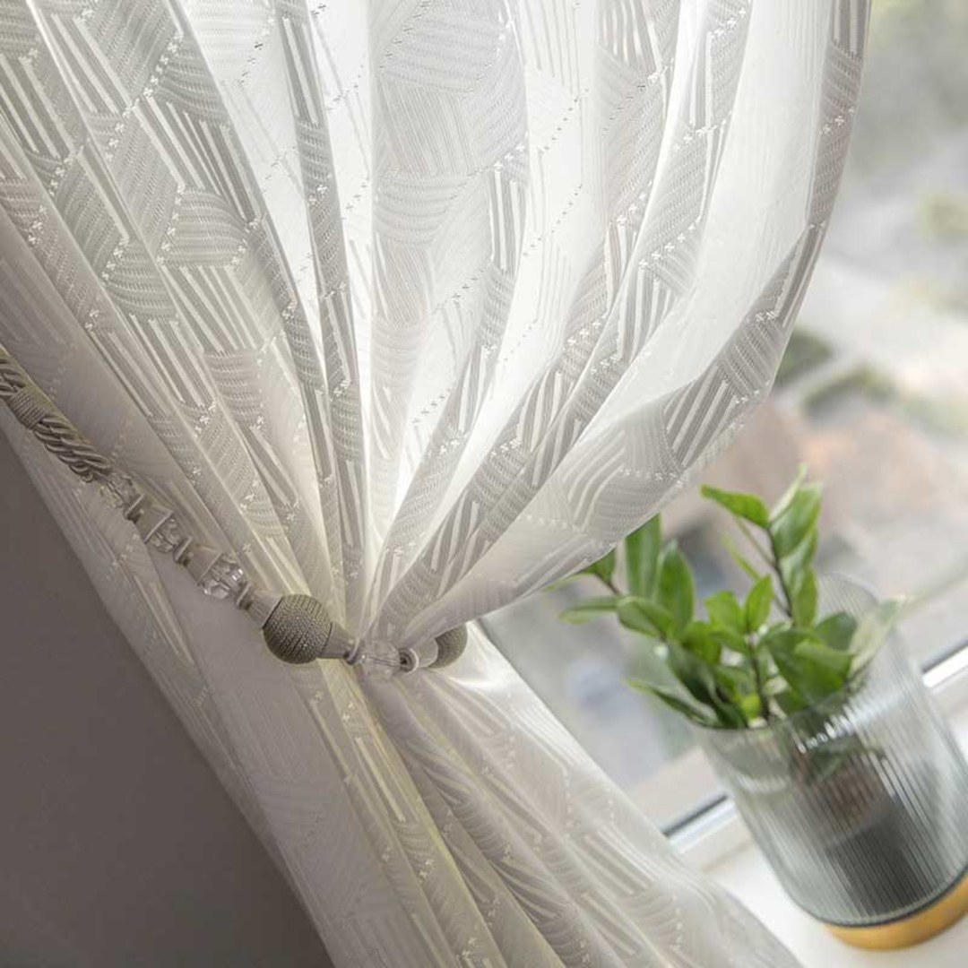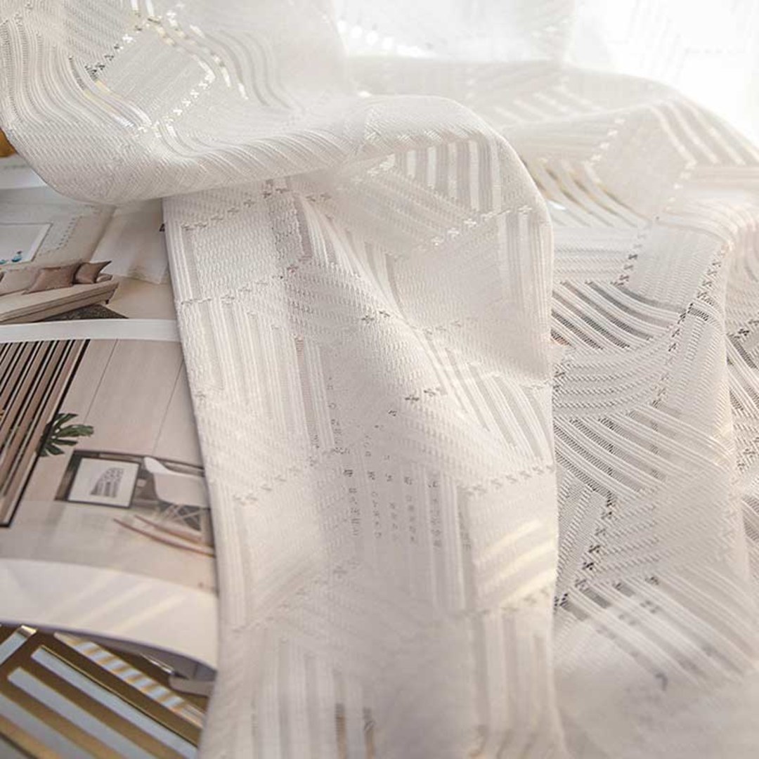Setzen Sie mit einzigartigen Formen und Texturdetails einen optischen Akzent. Diese einzigartigen Spitzennetzgardinen haben komplizierte Muster und Texturen, die einen modernen und eleganten Raum schaffen, ohne die minimalistische Ästhetik zu verlieren.Unsere maßgefertigten Gardinen werden sorgfältig nach Ihren spezifischen Wünschen gefertigt. Sie sind in einer Vielzahl von Aufhängungsarten erhältlich, die Ihrem Geschmack entsprechen, darunter Schlingen, Ösen, Falten, Maßfalten, umgekehrte Kastenfalten, Schlaufen, Rückenschlaufen, Stangentasche, Wellen und Türnetzgardinen.Entdecken Sie weitere unserer geometrischen Voiles.