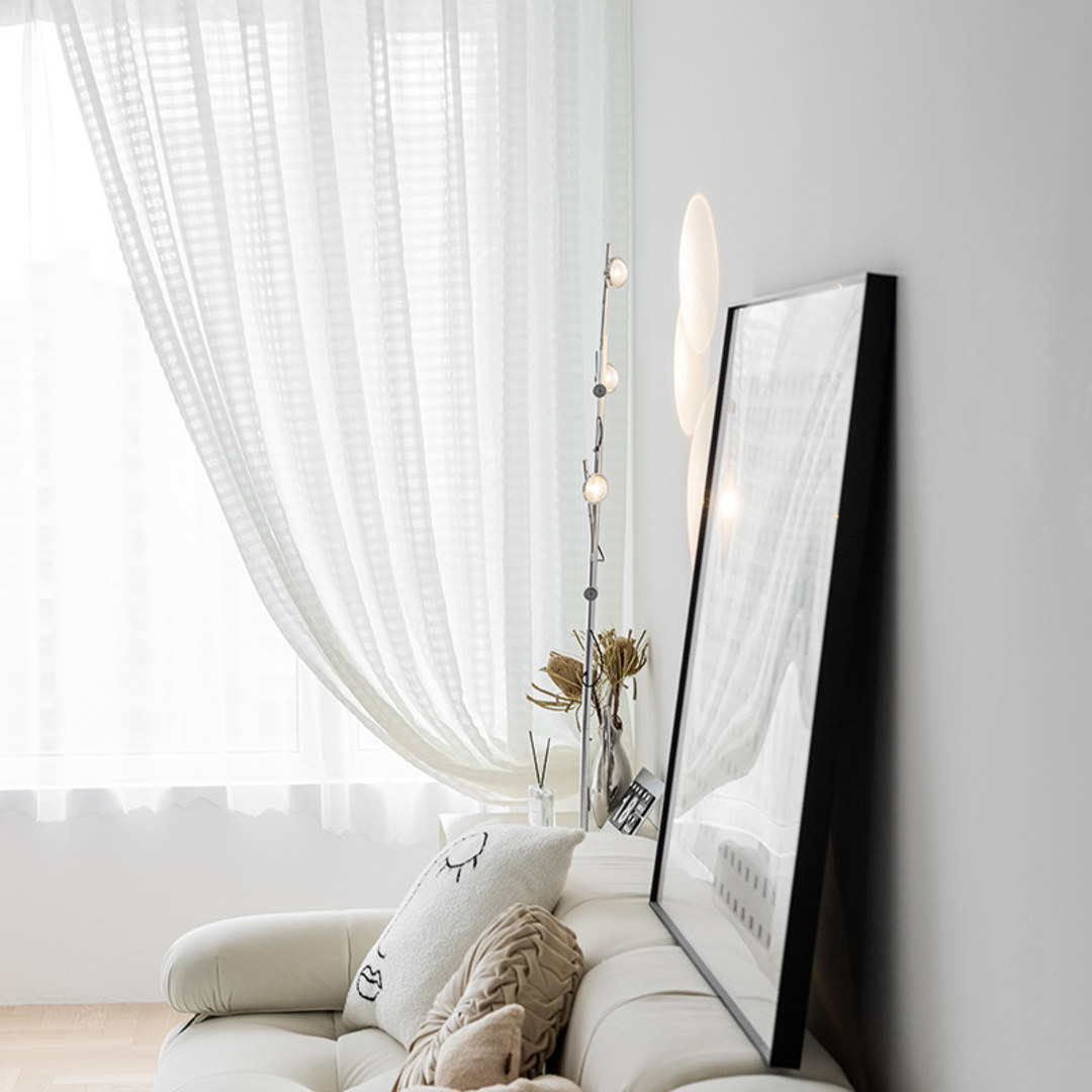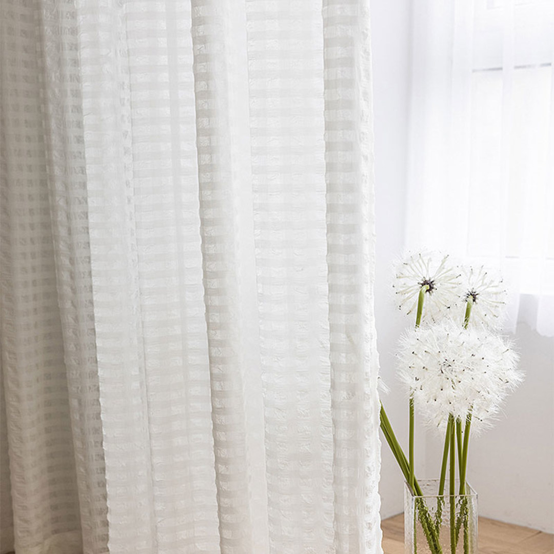 Diese einzigartigen zerknitterten Karovoilevorhänge ermöglichen Privatsphäre, ohne das gesamte Licht zu blockieren, was sie perfekt für französische Fenstervorhänge und Schiebetüren macht.