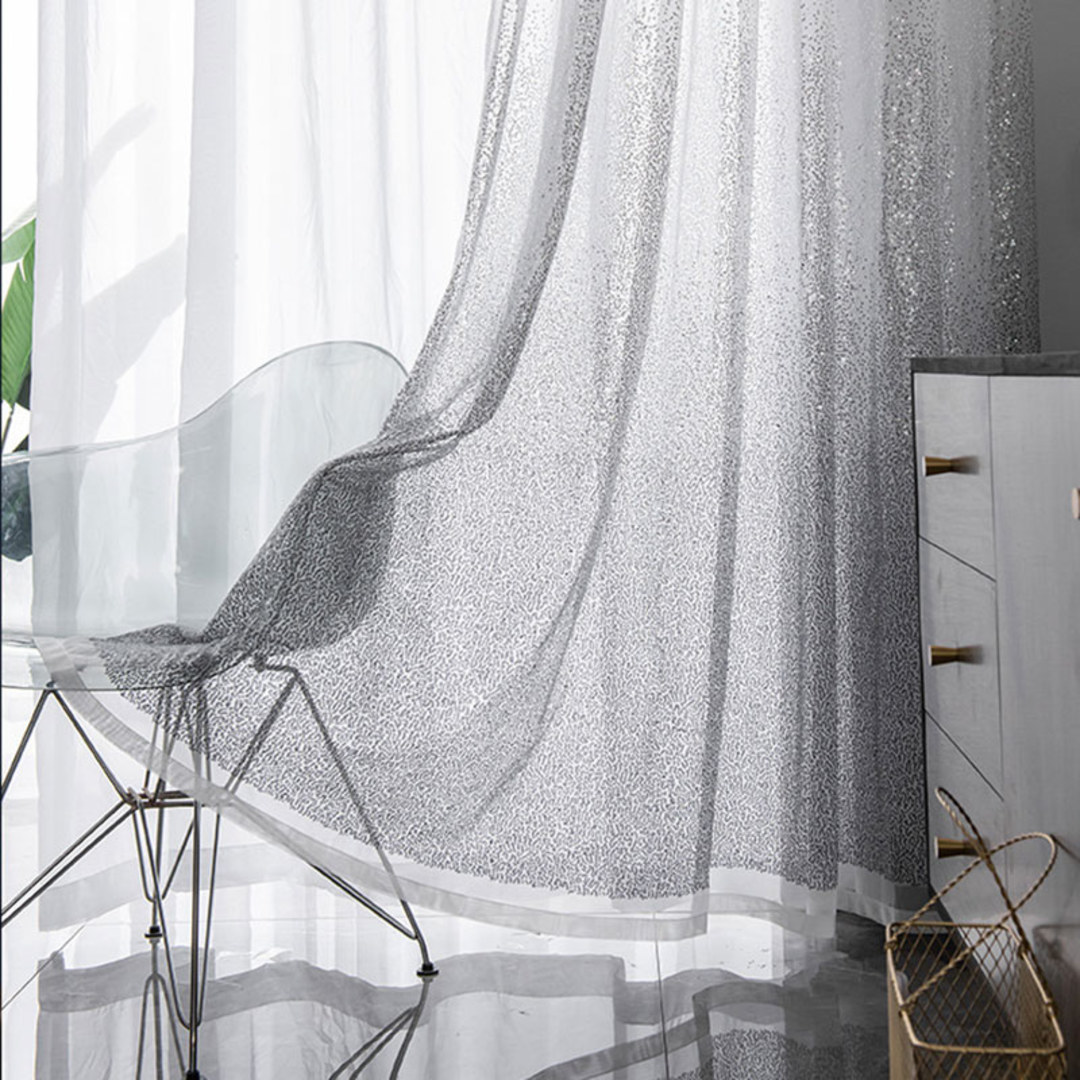 Galaxy Schwarz & Silber Pailletten Schimmernder Ombré Voile Vorhang