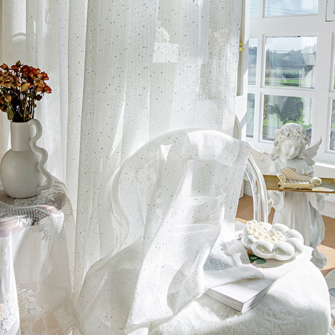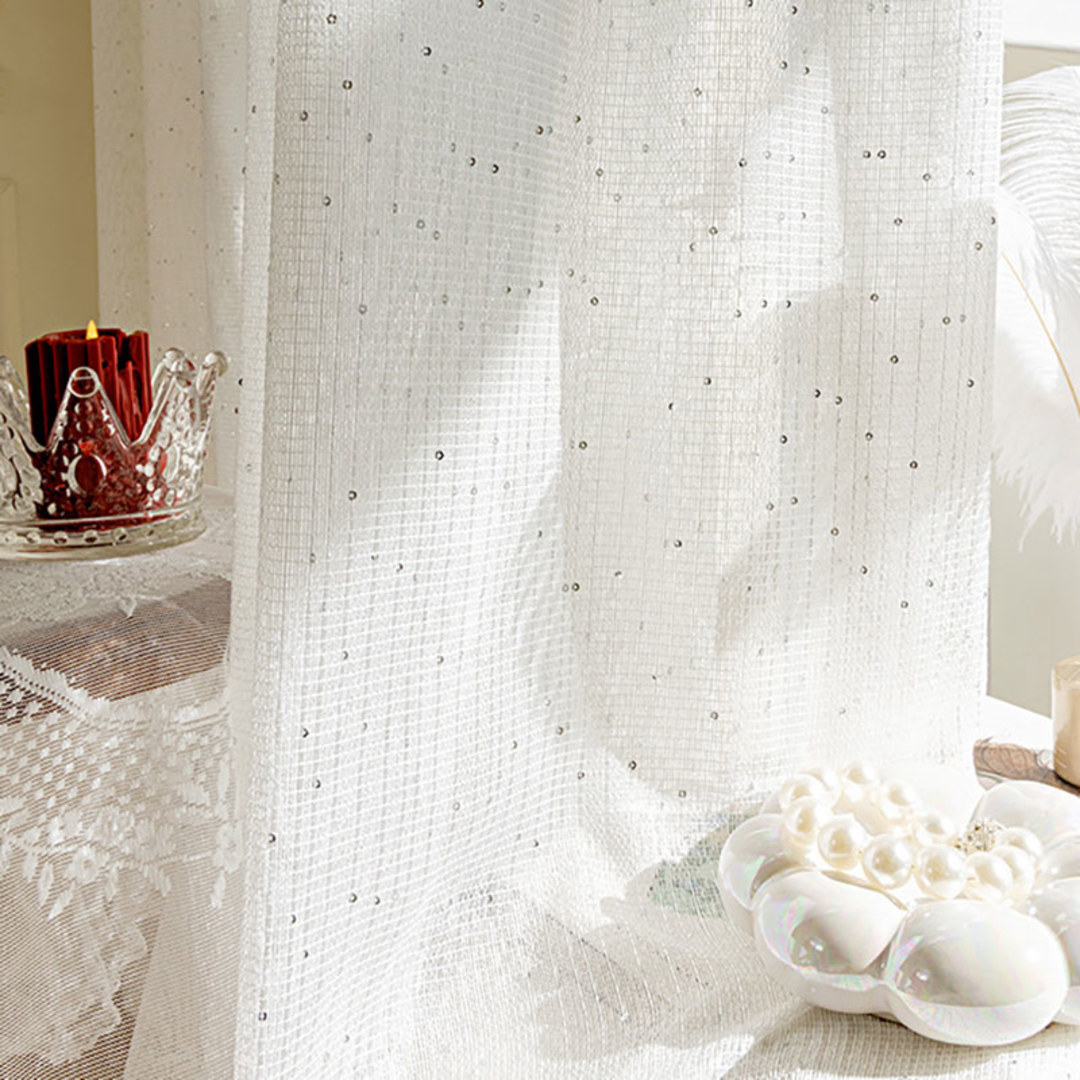 Verleihen Sie jedem Raum mit diesen mit Pailletten besetzten Vorhängen Glamour. Der Hauch von Glanz fängt das Licht ein und schafft ein frisches, modernes Aussehen. Unsere maßgefertigten Vorhänge werden sorgfältig nach Ihren spezifischen Wünschen gefertigt. Sie sind in einer Vielzahl von Kopfformen erhältlich, die Ihrem Geschmack entsprechen, darunter Schlingen, Ösen, Zwickfalten, Maßfalten, umgekehrte Kastenfalten, Schlaufen, Rückenschlaufen, Stangentasche und Wellenvorhänge. Entdecken Sie, wie funkelnde Voile-Vorhänge jeden Raum aufwerten können.