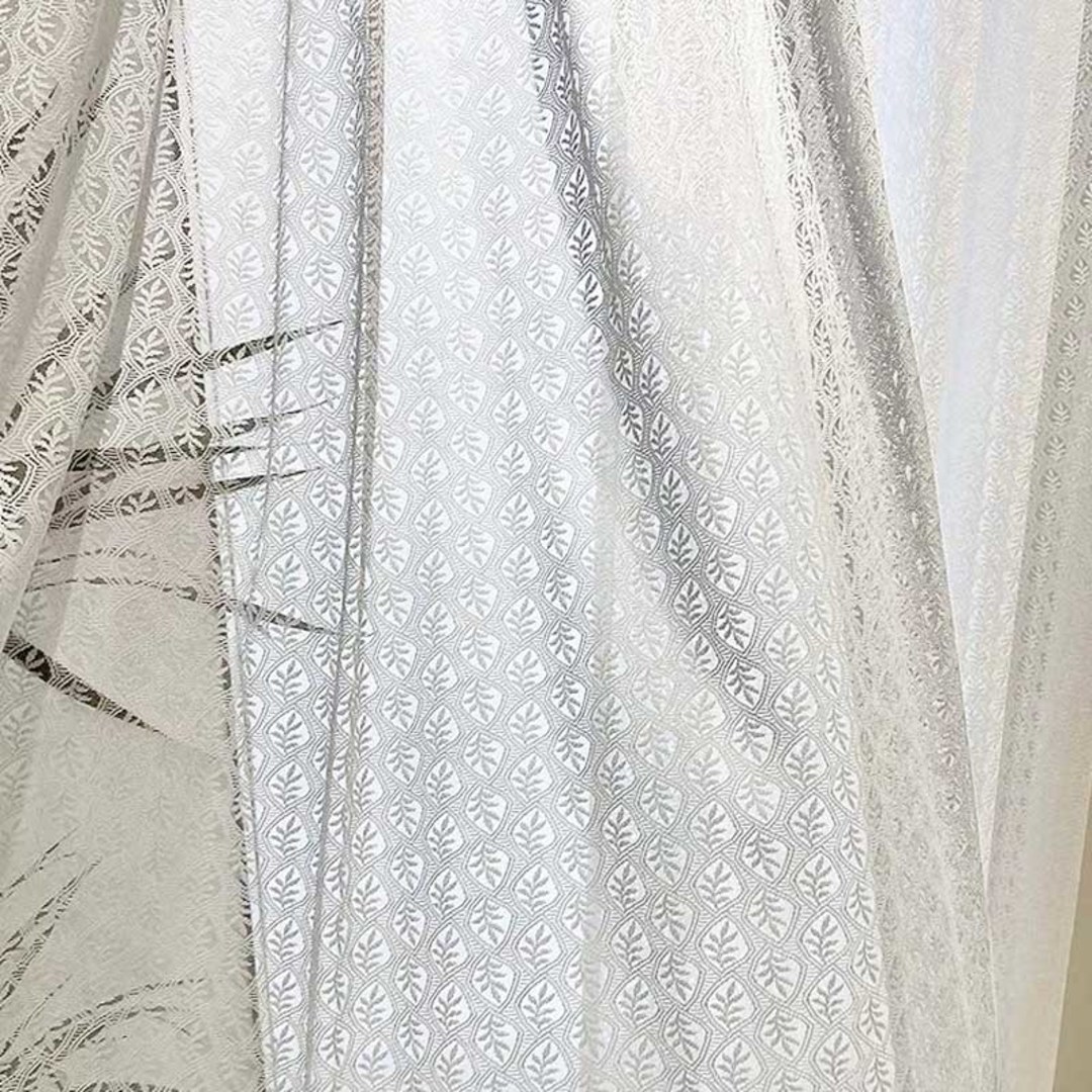 Mit einer luxuriösen Textur und einem stilvollen Blattdesign sind diese elfenbeinfarbenen Spitzennetzgardinen perfekt, um natürliches Licht zu verstärken und gleichzeitig jedem Raum einen zarten Touch zu verleihen. Unsere maßgefertigten Gardinen werden sorgfältig nach Ihren spezifischen Wünschen gefertigt. Sie sind in einer Vielzahl von Aufhängungsarten erhältlich, die Ihrem Geschmack entsprechen, darunter Schlingen, Ösen, Falten, maßgefertigte Falten, umgekehrte Kastenfalten, Schlaufen, Rückenschlaufen, Stangentasche, Wellen und Türnetzgardinen. Entdecken Sie, wie Blumenschaumstoffgardinen jeden Raum erneuern können.
