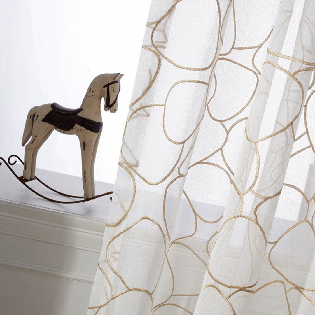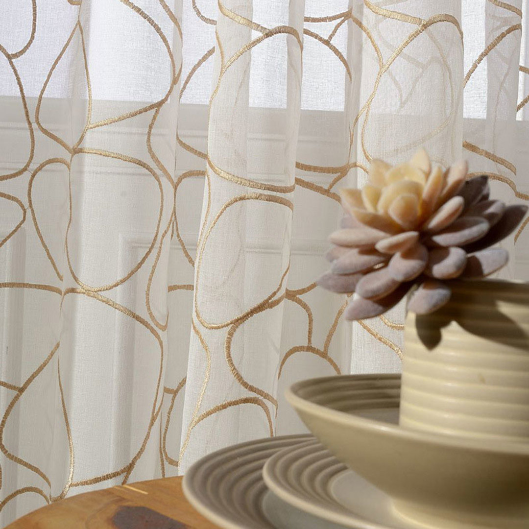 Probieren Sie eine dezente Möglichkeit, Ihrem Zuhause ein modernes und anspruchsvolles Aussehen mit diesen bestickten Voile-Vorhängen mit goldenen Kreisen zu verleihen. Reichlich natürliches Licht durchflutet diese eleganten Voile-Vorhänge, was sie perfekt für French-Door-Vorhänge und Schiebetürvorhänge macht. Unsere maßgefertigten Vorhänge werden sorgfältig nach Ihren spezifischen Wünschen gefertigt. Sie sind in einer Vielzahl von Kopfformen erhältlich, die Ihrem Geschmack entsprechen, darunter Schlitze, Ösen, Zwickfalten, Maßfalten, umgekehrte Kastenfalten, Schlaufen, Rückenschlaufen, Stangentasche und Wellenvorhänge.Entdecken Sie weitere exquisite geometrische Voile-Vorhänge.