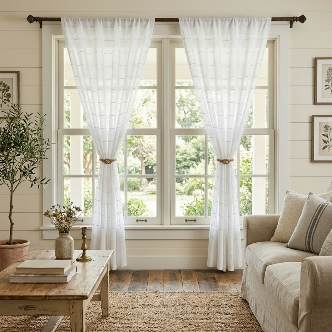 Pane Paradise kariertes Gitter Elfenbeinweiß Voile Vorhänge 20% OFF