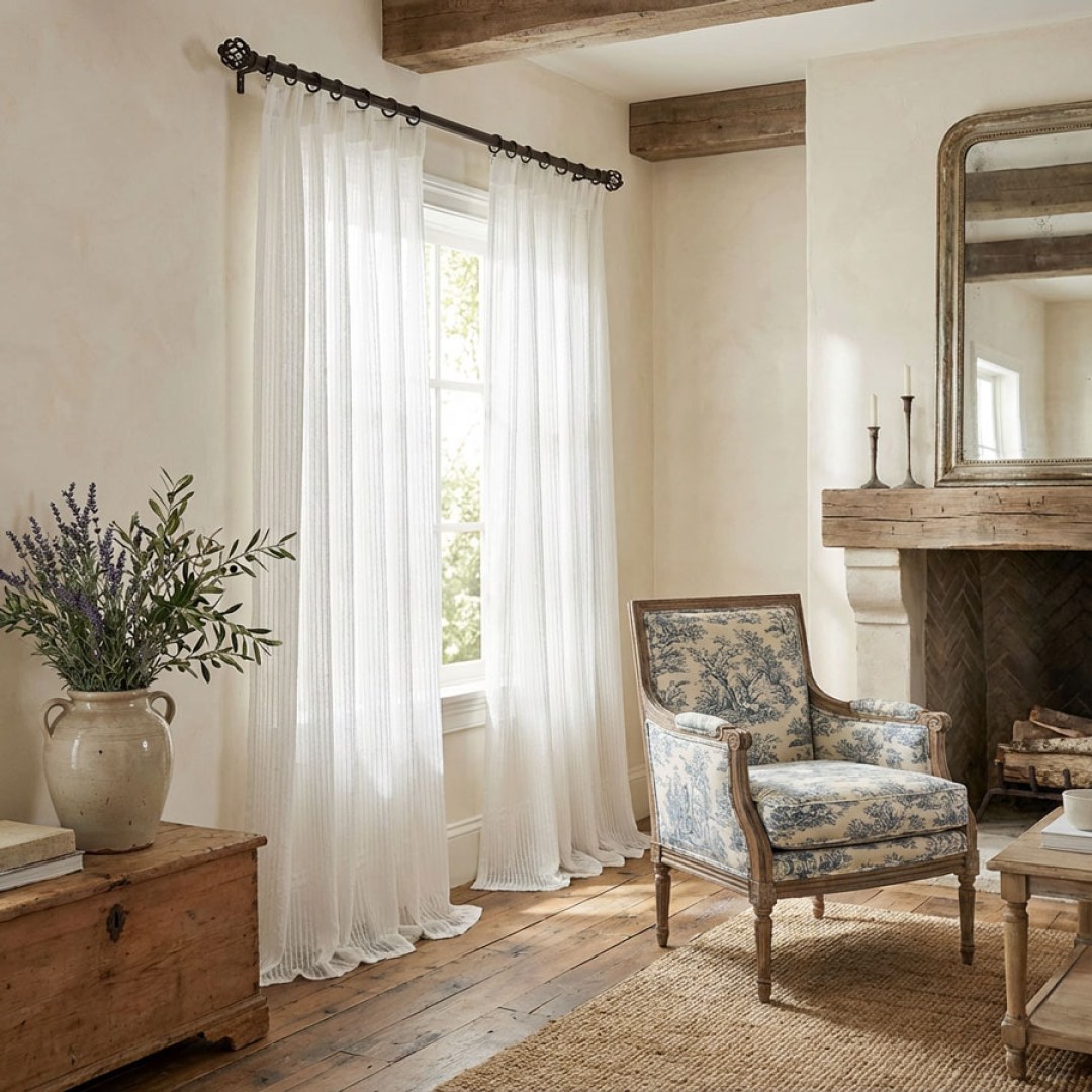 Diese einzigartigen gestreiften Voile-Vorhänge haben exquisite und filigrane Texturen, die einen eleganten und klassischen Raum schaffen, ohne die minimalistische Ästhetik zu verlieren. Unsere maßgefertigten Vorhänge werden sorgfältig nach Ihren spezifischen Wünschen gefertigt. Sie sind in einer Vielzahl von Aufhängungsarten erhältlich, die Ihrem Geschmack entsprechen, darunter Schlingen, Ösen, Plissees, Wellenschlagfalten, umgekehrte Kastenfalten, Schlaufen, Rückenschlaufen, Tunnelzug und Wave-Vorhänge. Entdecken Sie, wie gestreifte Voile-Vorhänge jeden Raum aufwerten können.