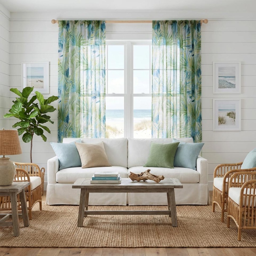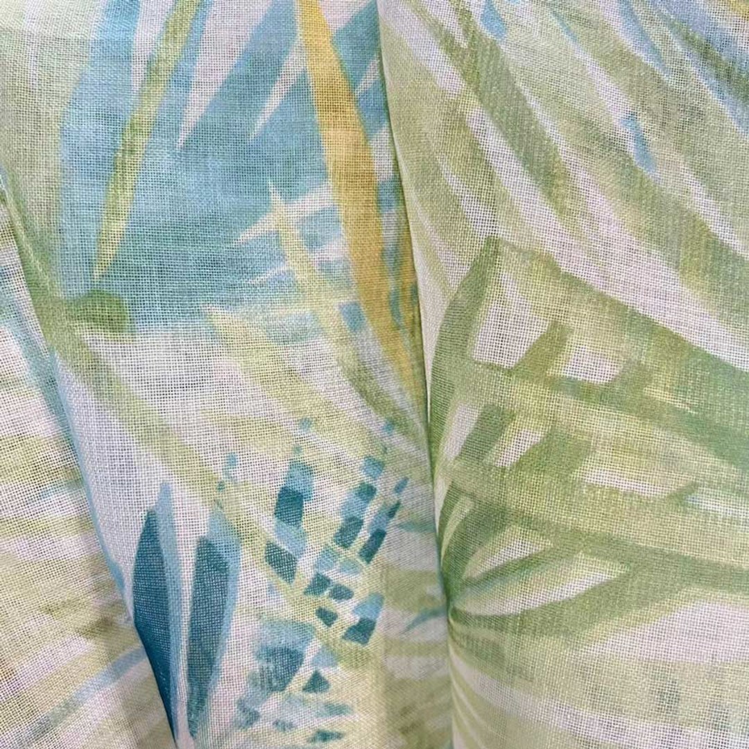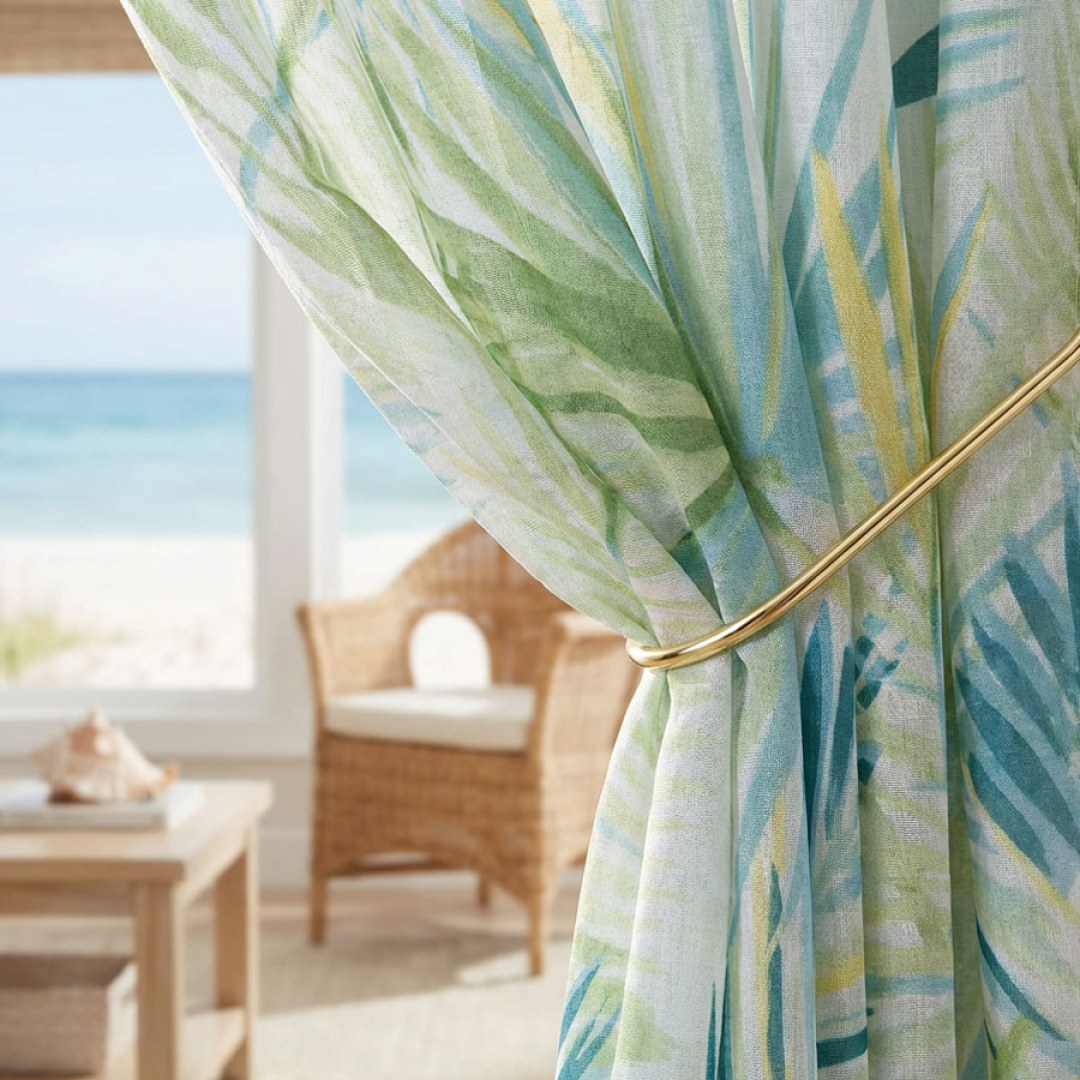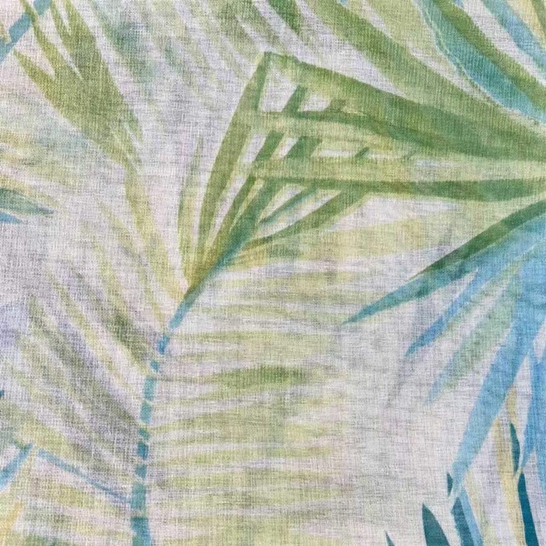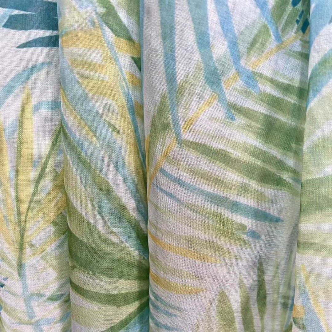 Palm Delight Tropische Blätter Grün Blau Voile Vorhang präsentiert ein tropisches Blattmuster in erfrischenden Grüntönen und Blau, das eine ruhige und belebende Atmosphäre schafft. Die filigrane Gestaltung der Blätter verleiht Ihrem Raum einen Hauch tropischer Eleganz und ermöglicht es Ihnen, die Gelassenheit einer üppigen Oase zu genießen. Unsere maßgefertigten Voile Vorhänge werden sorgfältig nach Ihren individuellen Wünschen gefertigt. Sie sind in verschiedenen Aufhängungsarten erhältlich, die Ihrem Geschmack entsprechen, darunter Schlaufenschlauch, Ösen, Zwickfalten, Maßfalten, umgekehrte Kastenfalten, Schlaufen, Rückenschlaufen, Stangentasche und Wellenstore.Entdecken Sie, wie tropische Voile Vorhänge jeden Raum aufwerten können.