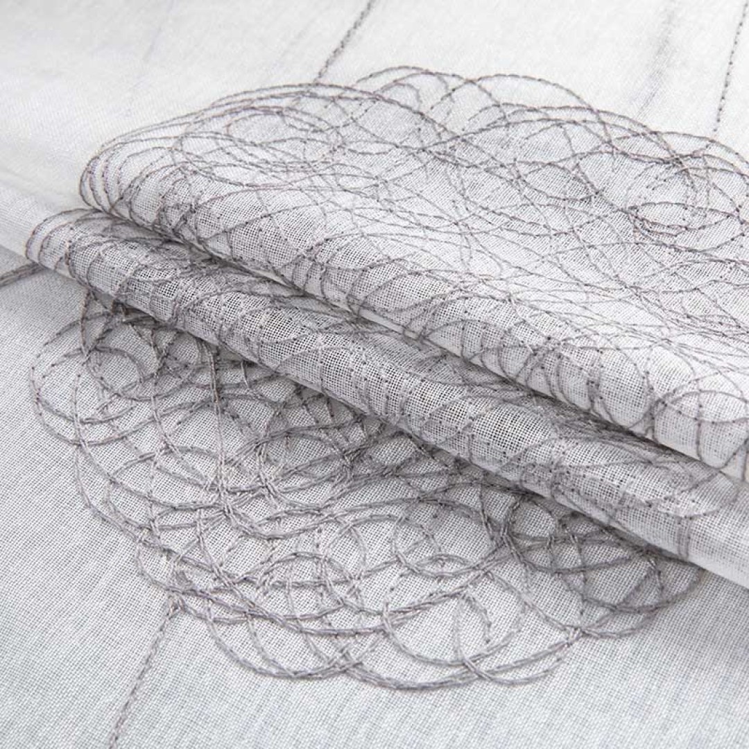 Tanzende Pompon-Stickerei Grauer Voile-Vorhang