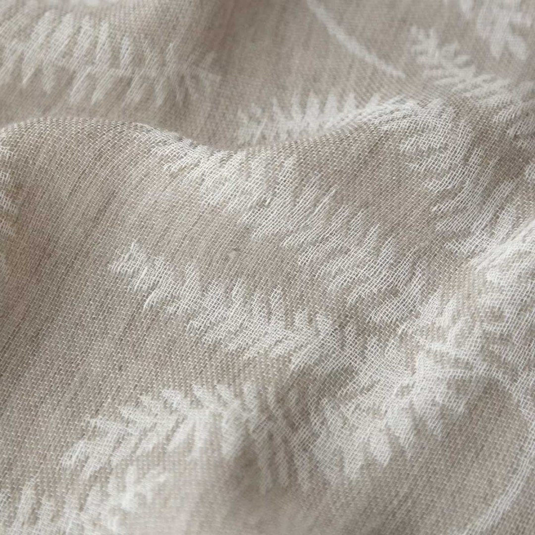 Ein zarter Tanz von Farnmustern, die subtil in den transparenten Stoff eingewebt sind, bringt mit diesem Vorhang einen Hauch von Natur ins Haus. Das sanfte Zusammenspiel von Leinen und Wolle erzeugt einen luftigen, lichtdurchlässigen Effekt, ideal für einen ruhigen und friedlichen Raum. Unsere maßgefertigten Voile-Vorhänge werden sorgfältig verarbeitet, um perfekt auf Ihre individuellen Fenstermaße zugeschnitten zu sein. Wählen Sie aus einer Vielzahl anspruchsvoller Aufhängungsarten, darunter Ösen, Schlaufen, Plisseekraft, Zwickfalten, Maßplissees, Tunnelzug, Fenstergardinen oder Wellenvorhänge. Entdecken Sie, wie Leinen-Voile-Vorhänge jeden Raum aufwerten können.