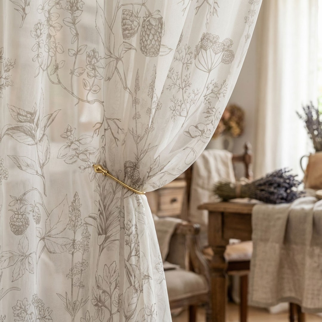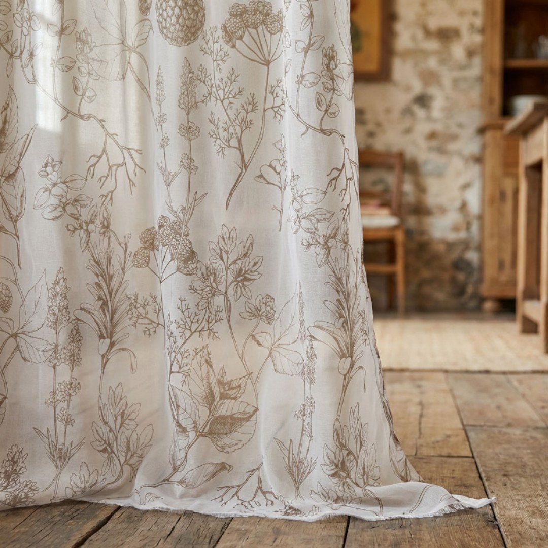 Bringen Sie mit unseren Berry Meadow Voile-Blumenstoren einen Hauch natürlicher Schönheit in Ihr Zuhause, die mit akribischen Blumenmustern auf zartem, transparentem Stoff prahlen. Die sonnengeküssten Beeren schaffen eine gemütliche Atmosphäre, während die detaillierten Blumenmotive Ihrem Raum eine künstlerische Note verleihen.