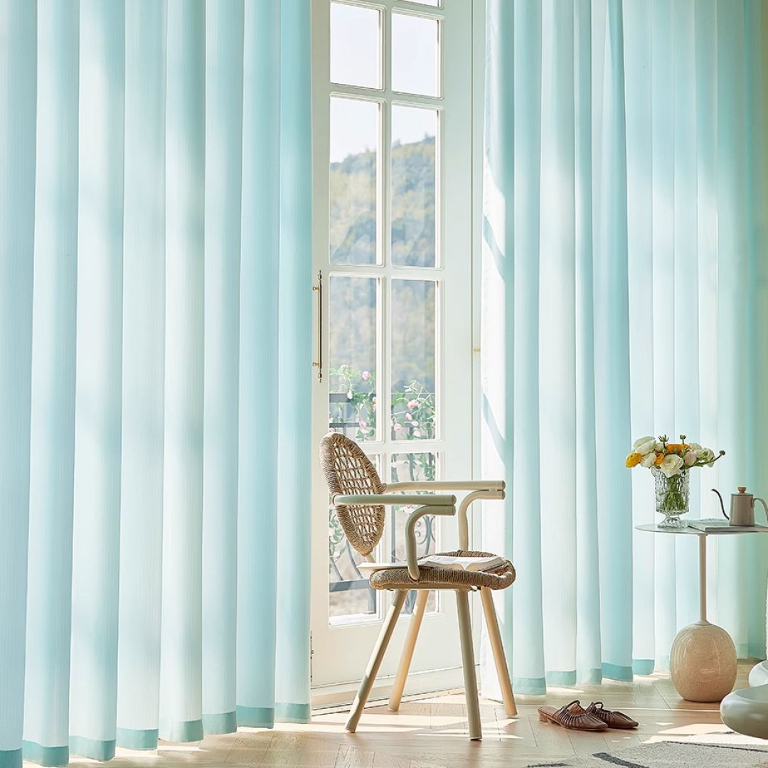 Avila Wasserdichter Strukturierter Hellblauer Outdoor Voile Vorhang
